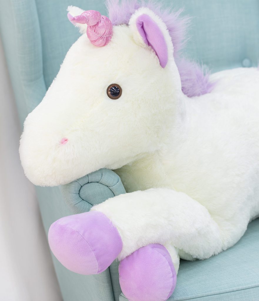 Velký plyšový jednorožec Bruno je snem každého dítětě. Je vyrobený z kvalitního a hebkého materiálu a velmi dobře vycpaný kvalitním plyšem a svou velikostí uchvátí a zaujme každé dítě, ale určitě potěší i přítelkyni jako dárek k narozeninám nebo třeba k Valentýnu. Měří na délu 120 cm.