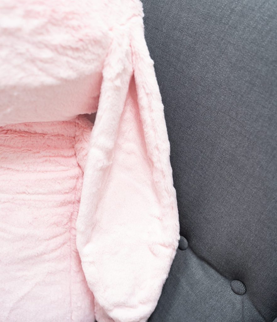 Jedná se o zcela bezpečnou hračku, která je vhodná i pro ty nejmenší. Králíček poslouží jako polštář nebo jako fajn kamarád.