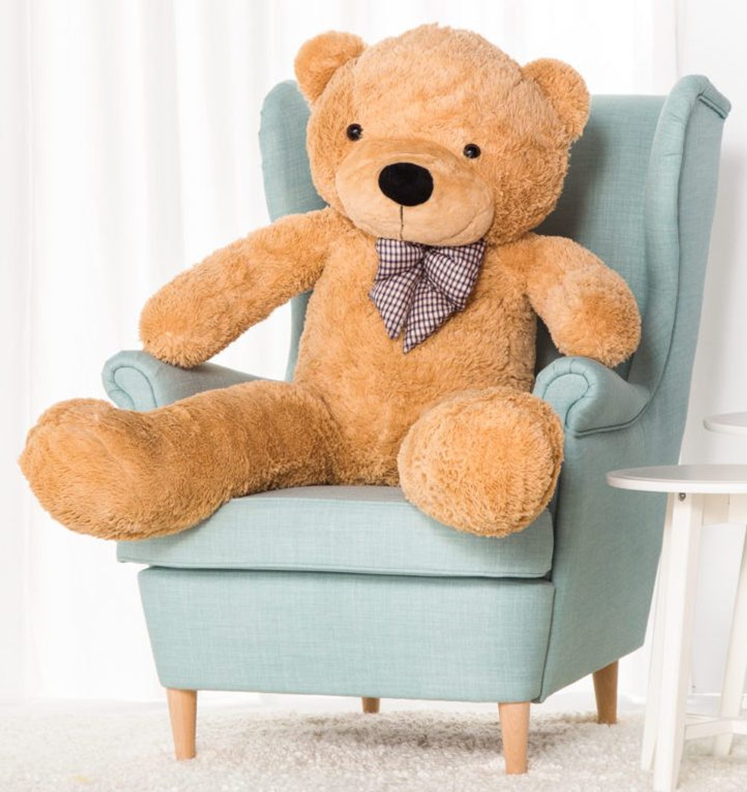 Upozornění: vzhledem ke své velikosti medvěd sám nestojí ani nesedí.