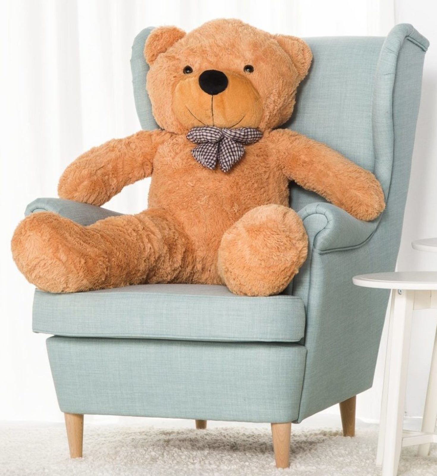 Upozornění: vzhledem ke své velikosti medvěd sám nestojí ani nesedí.