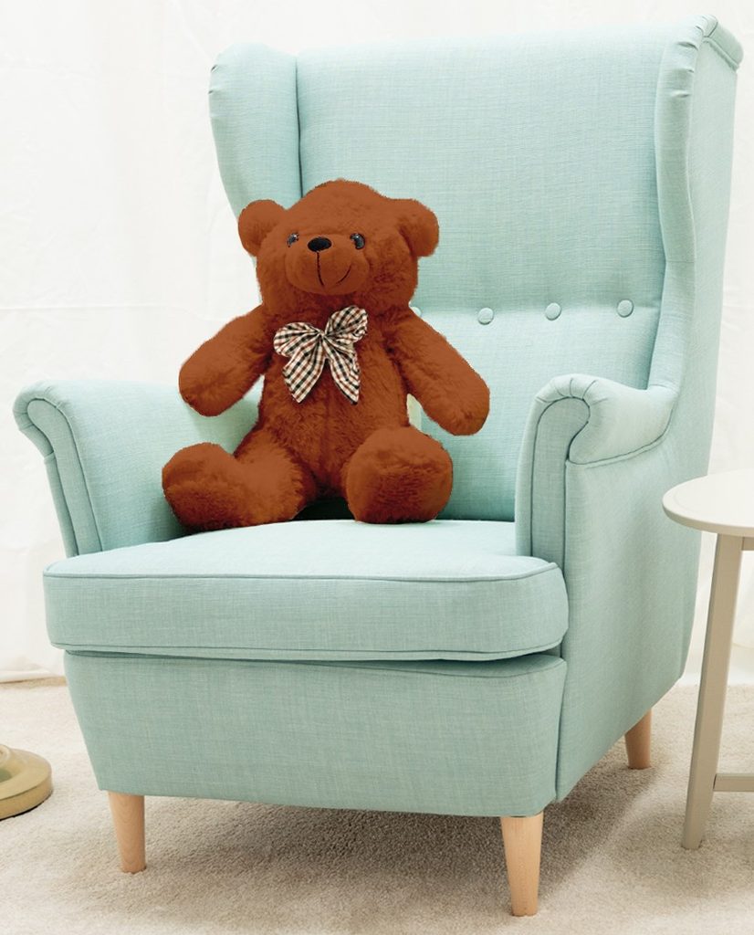 Upozornění: vzhledem ke své velikosti medvěd sám nestojí ani nesedí.