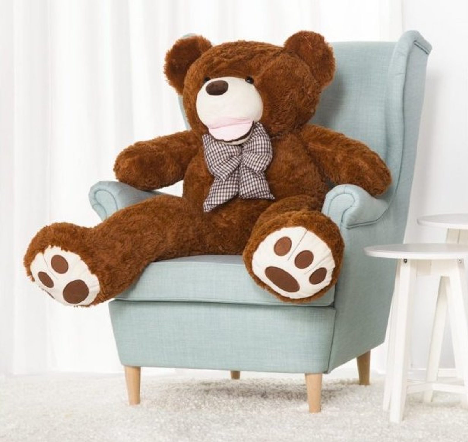 Upozornění: vzhledem ke své velikosti medvěd sám nestojí ani nesedí.