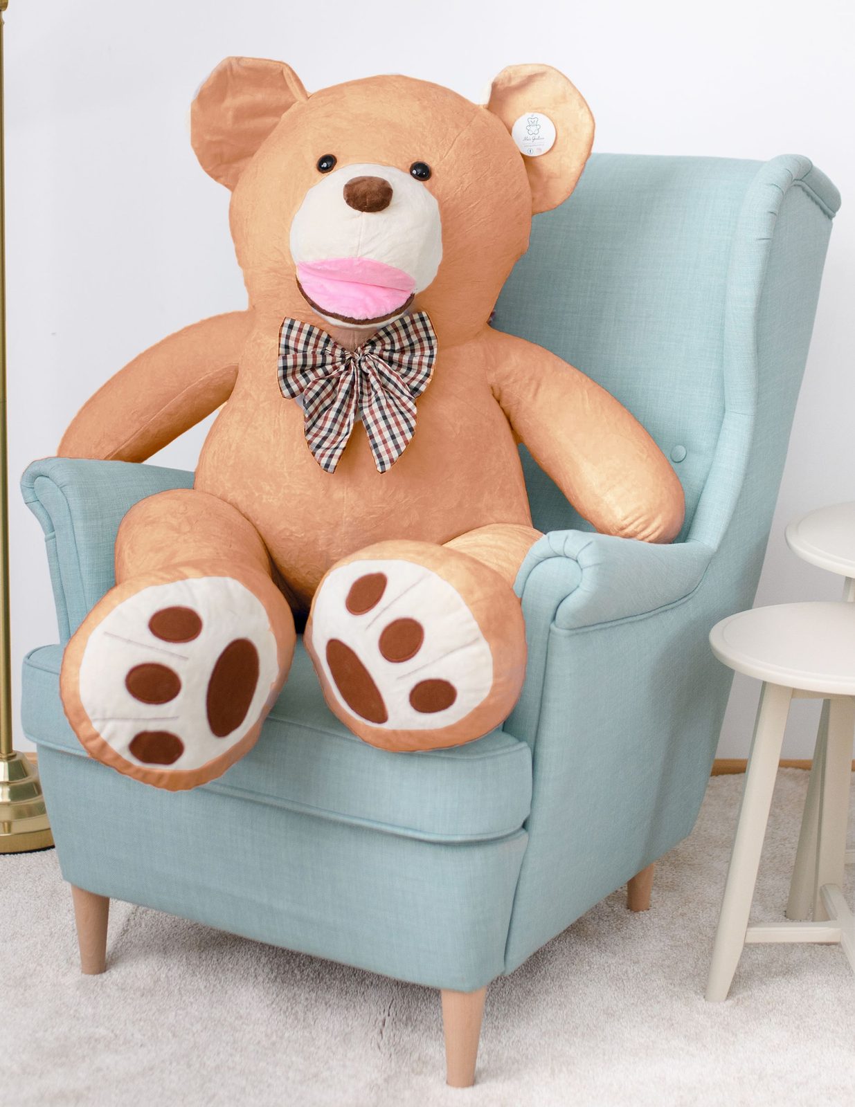 Upozornění: vzhledem ke své velikosti medvěd sám nestojí ani nesedí.