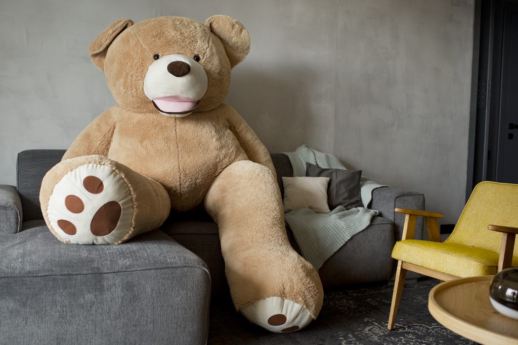 Upozornění: vzhledem ke své velikosti medvěd sám nestojí ani nesedí.