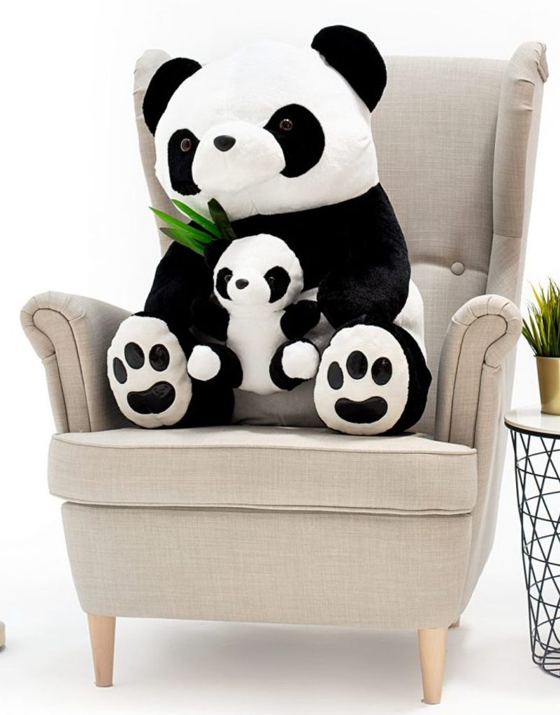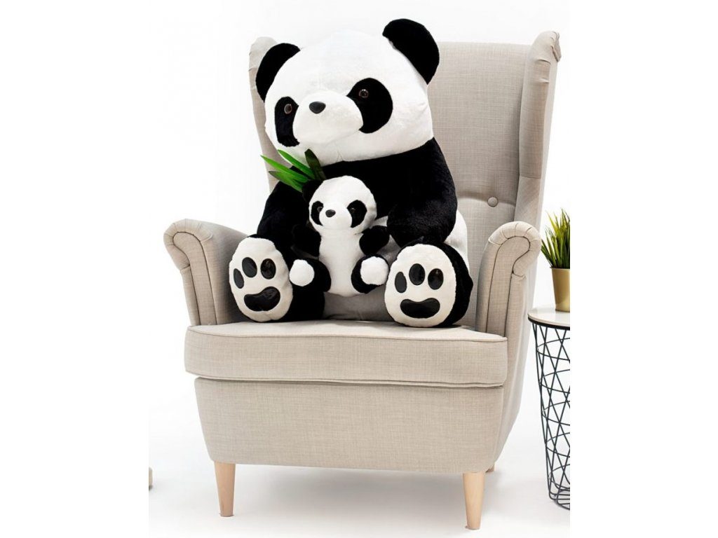 Velký plyšový medvěd Panda je sen každého dítětě. Pořádný medvěd vyrobený z kvalitního a hebkého materiálu a velmi dobře vycpaný kvalitním plyšem svou velikostí uchvátí a zaujme každé dítě, ale určitě potěší i přítelkyni jako dárek k narozeninám nebo třeba k Valentýnu. Medvěd není žádný prcek, měří na výšku 100 cm a v náručí má malinkou pandu.