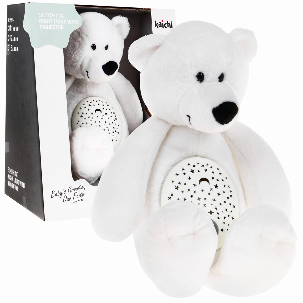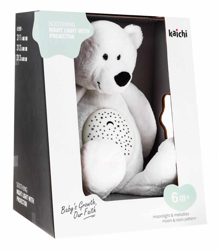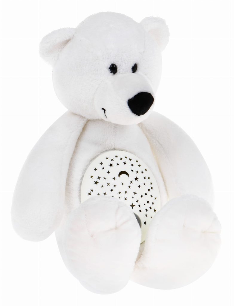 Plyšový medvídek Hugo se světelným a hudebním projektorem skrytým v bříšku je ideální hračkou pro ty nejmenší děti kdy jim pomůže snadno usnout. Měkké, jemné a příjemné na dotek vycpané zvíře s mechanismem skrytým v bříšku, díky kterému čas, který dítě tráví s maskotem, doprovází příjemná hudba a světelné efekty. Hrošík přehrává melodie, zvuky tlukotu srdce a ukolébavky. Je vybavený regulací hlasitosti, vypínačem světýlek a automatickým vypnutím po 40 minutách. Hračka je určena pro děti od 6 měsíců.