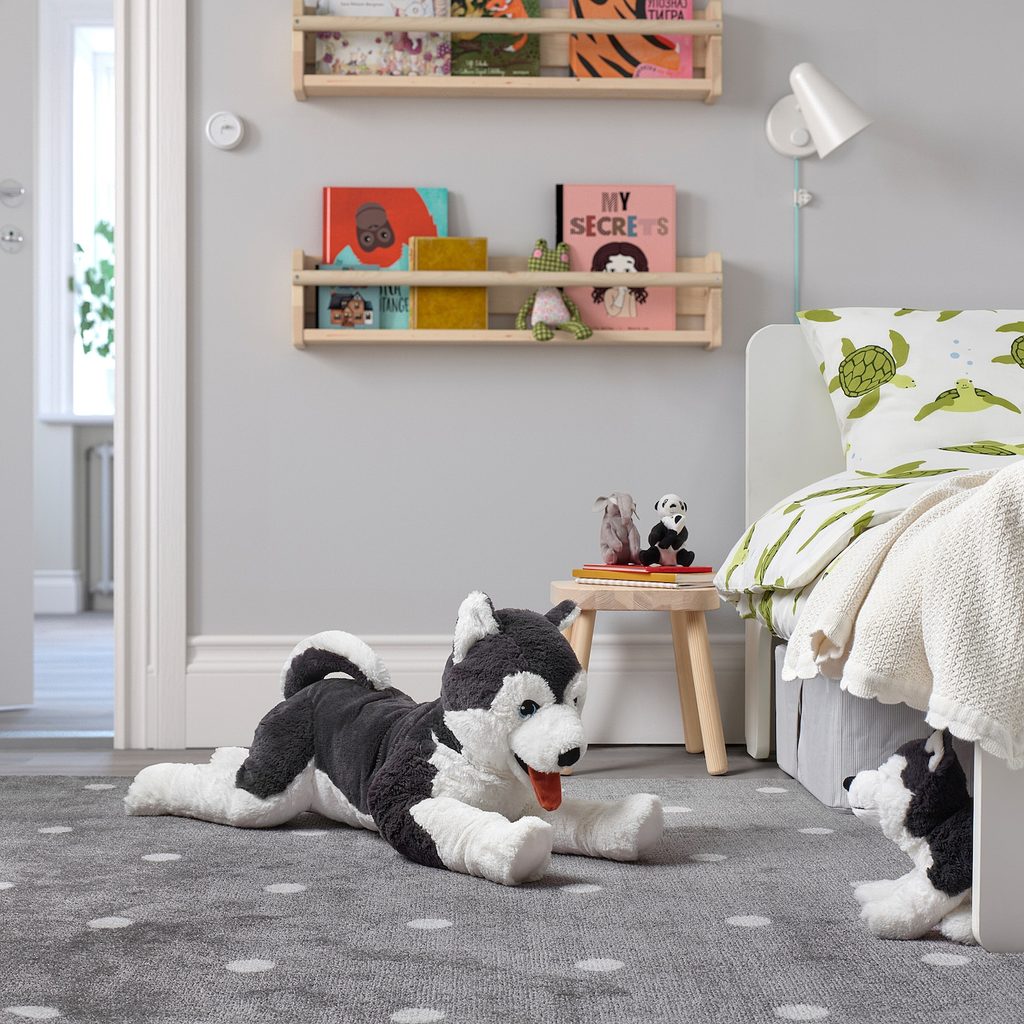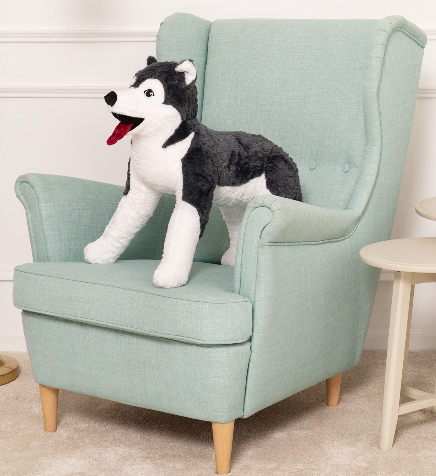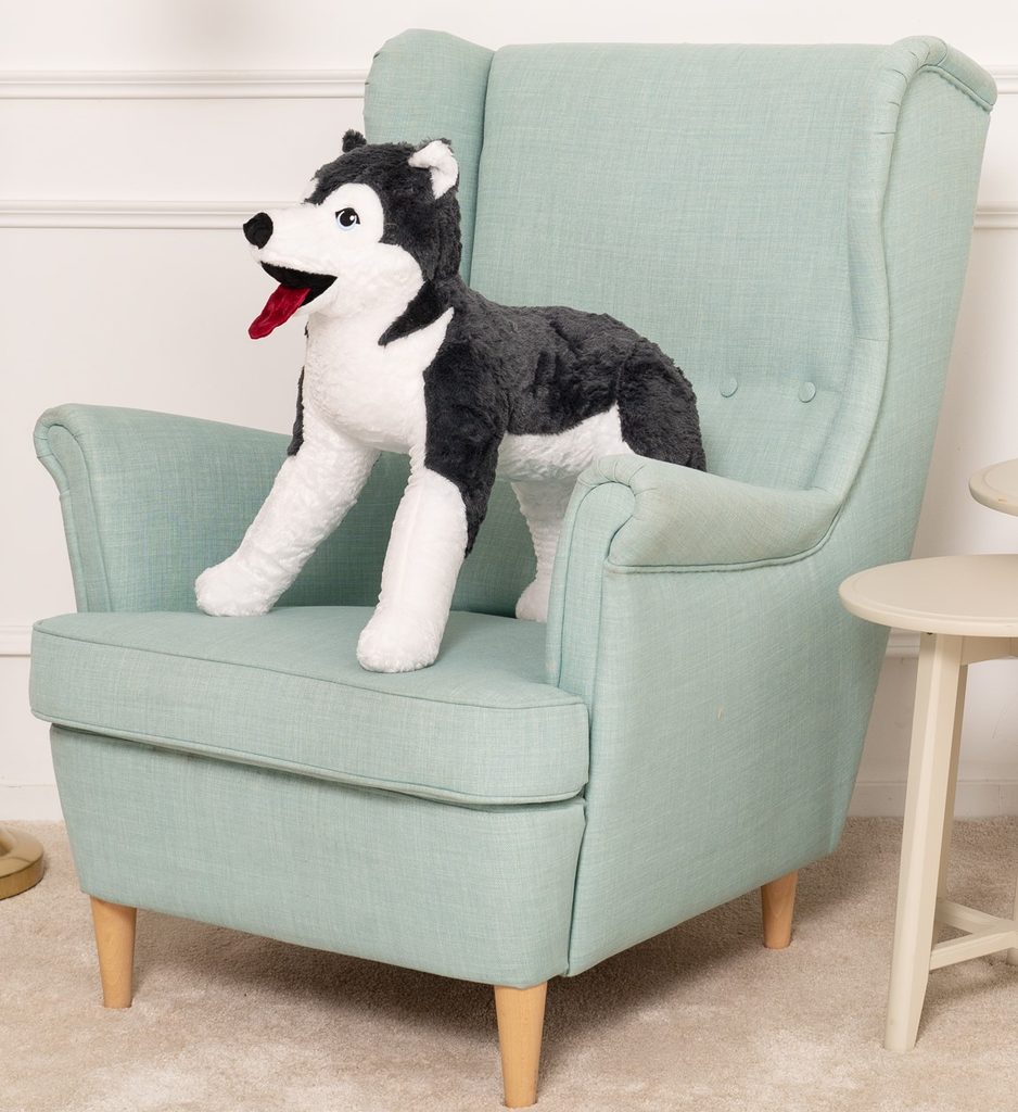 Plyšový pejsek Husky je sen každého dítěte. Je vyrobený z kvalitního a hebkého materiálu, svou velikostí uchvátí a zaujme každé dítě, ale určitě potěší i přítelkyni jako dárek k narozeninám nebo třeba k Valentýnu. Pejsek není žádný prcek, měří na délku 70 cm.
