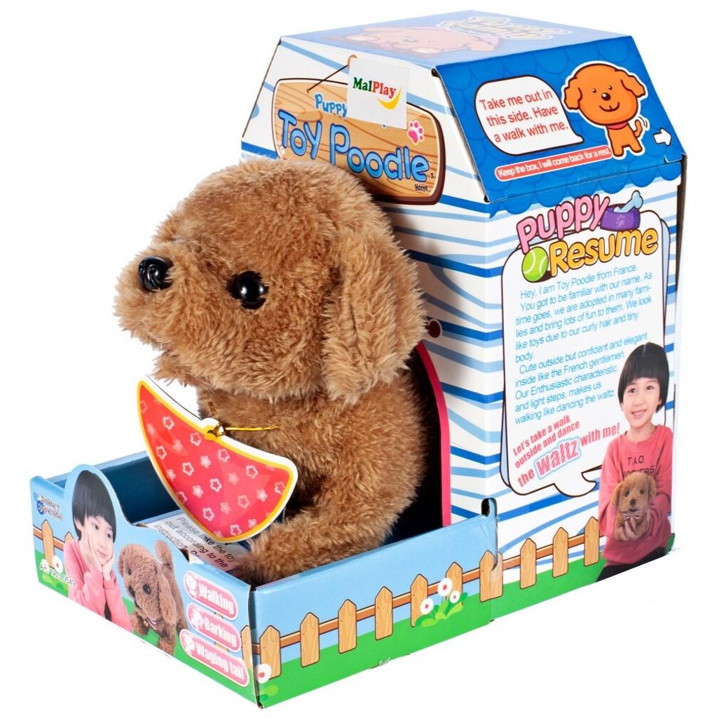 Plyšový pejsek Pudl je ideální hračkou nejmenší děti. Je vyroben z jemného na dotyk příjemného materiálu. Po zapnutí pejsek pohybuje ocáskem, chodí a štěká. Hračka je určena pro děti od 36 měsíců věku.