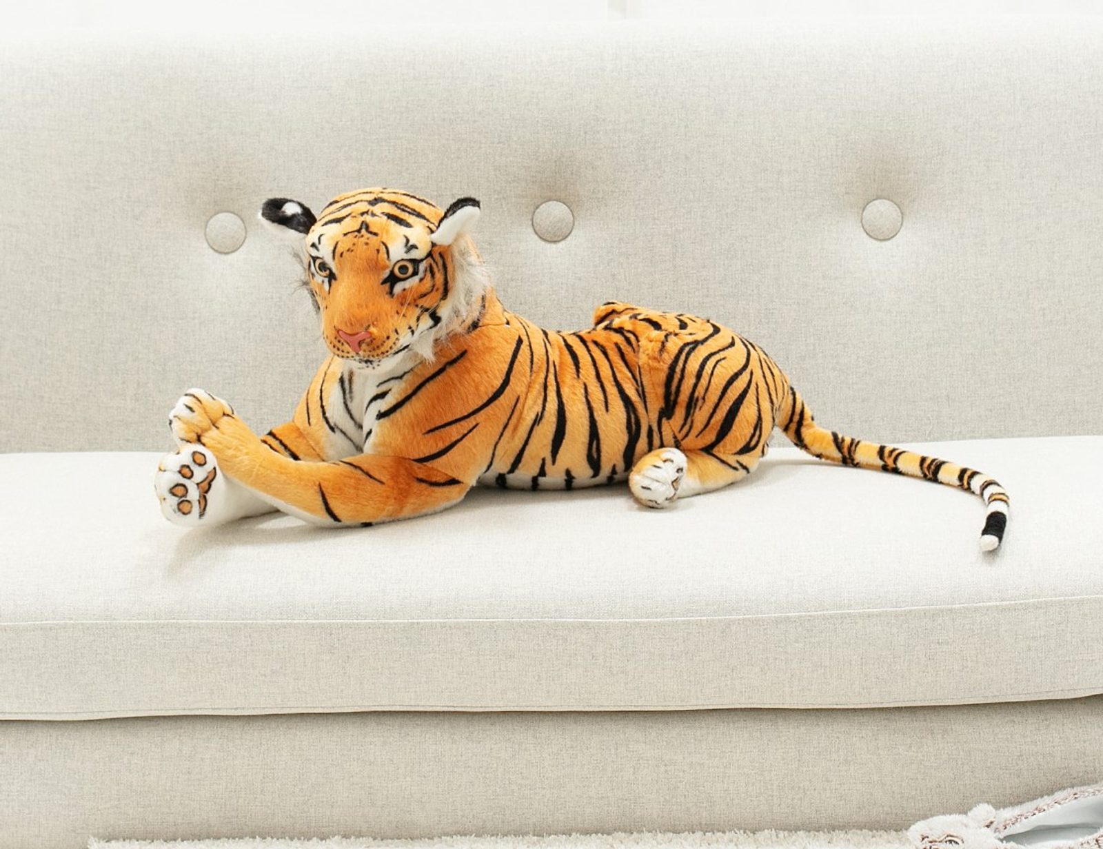 Plyšový tygr Roland je snem každého dítětě. Je vyrobený z kvalitního a hebkého materiálu a velmi dobře vycpaný kvalitním plyšem a svou velikostí uchvátí a zaujme každé dítě, ale určitě potěší i přítelkyni jako dárek k narozeninám nebo třeba k Valentýnu. Měří na délku 70 cm.