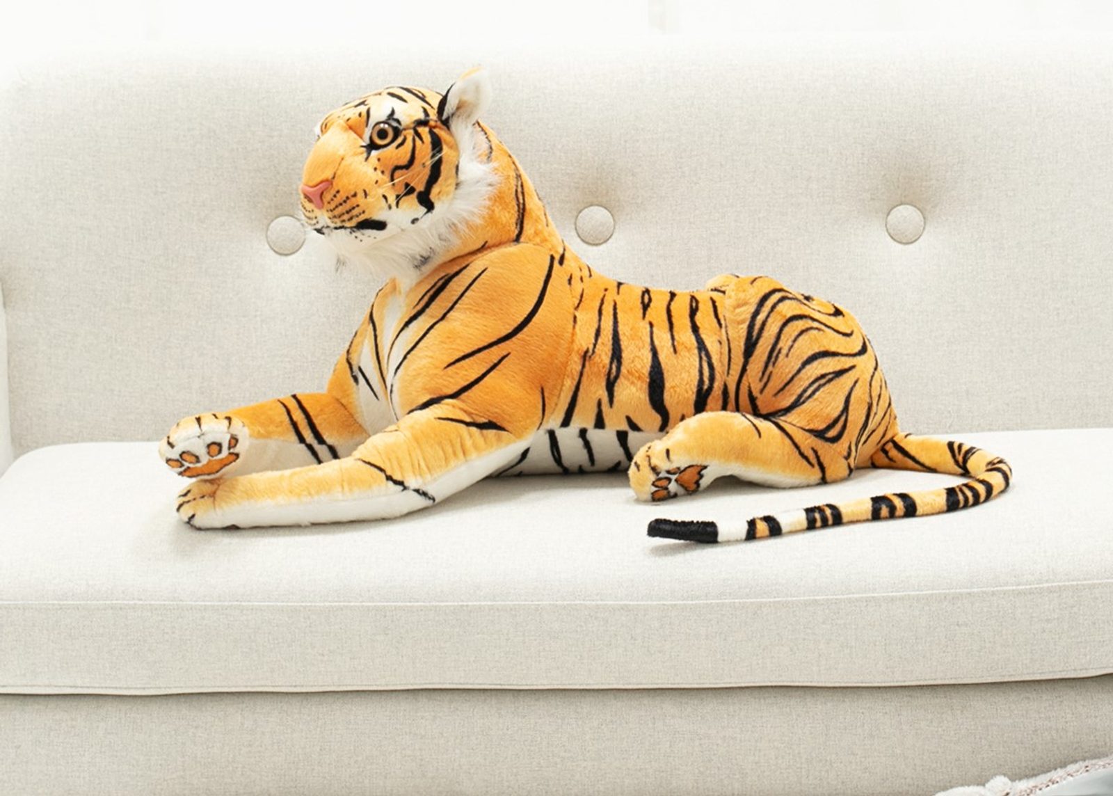 Velký plyšový tygr Roland je snem každého dítětě. Je vyrobený z kvalitního a hebkého materiálu a velmi dobře vycpaný kvalitním plyšem a svou velikostí uchvátí a zaujme každé dítě, ale určitě potěší i přítelkyni jako dárek k narozeninám nebo třeba k Valentýnu. Měří na délku 90 cm.