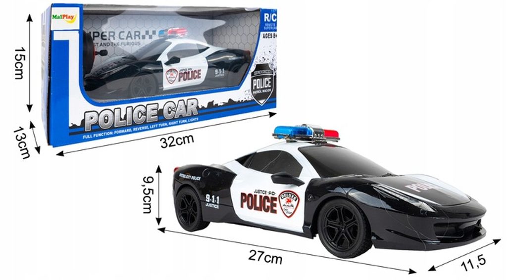Policejní autíčko Patrol Wagon na dálkové ovládání s dálkovým ovládáním 27 MHz se vzhledem sportovního vozu umožnuje jízdu dopředu a dozadu, zatáčí doprava a doleva. Dálkové ovládání je napájeno bateriemi, které nejsou součástí balení. Samotné autíčko má nabíjecí 3,7V lithiový akumulátor včetně USB nabíječky. Autíčko má gumová kola a je vybaveno předními LED světly. Autíčko je vyrobeno z plastu a má certifikaci CE.