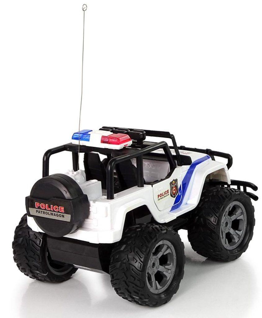 Policejní terénní autíčko Police Super Car s dálkovým ovládáním 27MHz v provedení policejního vozu umožnuje jízdu dopředu a dozadu, zatáčí doprava a doleva. Je vybaveno velkými gumovými koly o průměru 8 cm. Dveře auta jsou otevírací. Na střeše jsou umístěny svítící majáky. Součástí balení je dálkový ovladač se 4 tlačítky pro změnu směru jízdy a jízdu vpřed a vzad. Ovladač je napájen bateriemi, které nejsou součástí balení. Autíčko je vyrobeno z plastu a má certifikaci CE.