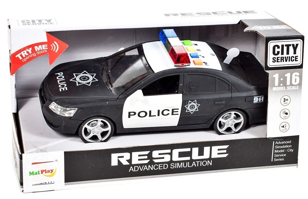 Policejní auto City Rescue v měřítku 1:16 je ideální hračkou pro rozvoj manuální zručnosti a logického myšlení. Je vybaveno tlačítky, které spouští zvuky klaksonu, sirény, couvání a zamykání auta. Na střeše je umístěný svítící maják. Pohon zajišťuje setrvačník. Hračka je určena pro děti od 36 měsíců věku.