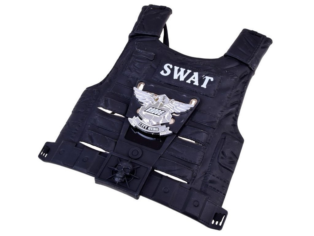 Sestava Malý policista s maskou a kompletním příslušenstvím je ideální hračkou pro každého malého strážce zákona. V sestavě najdete vše co bude potřebovat. Neprůstřelnou vestu, samopal, pouta, masku, hodinky, píšťalku, identifikační odznak a také vysílačku na baterie, která vydává zvuky. Hračka je určena pro děti od 36 měsíců věku.
