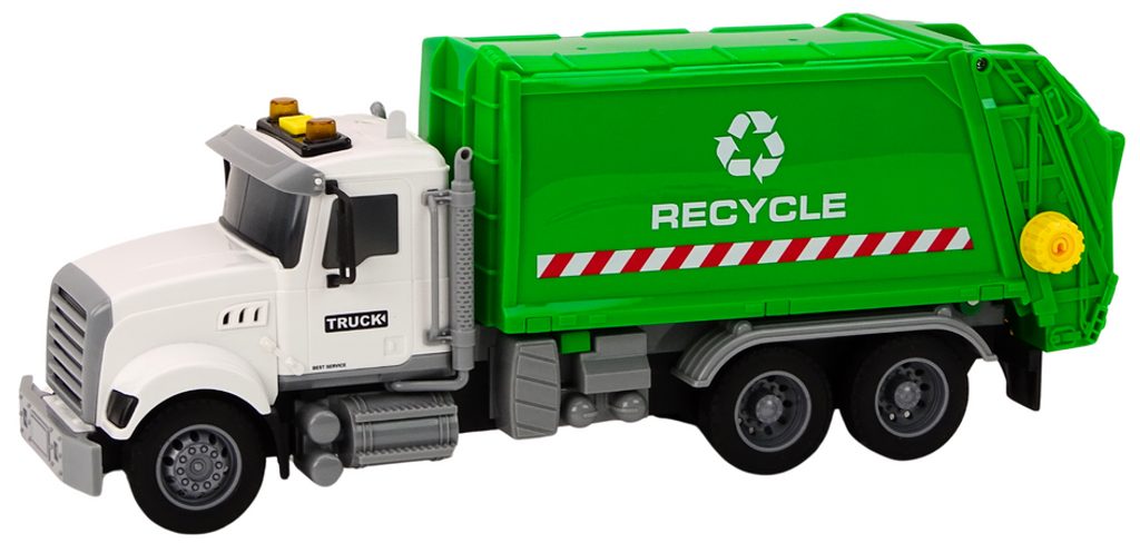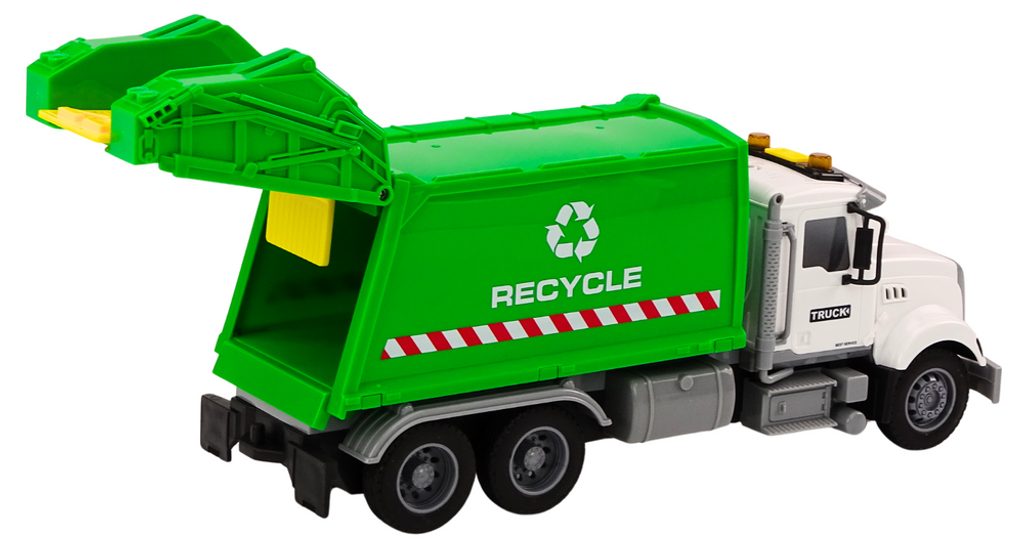 Dětské popelářské auto Recycle Truck je ideální hračkou pro rozvoj manuální zručnosti a logického myšlení. Je vybaveno zadním otevíracím a sklopným čelem. Na střeše kabiny jsou umístěny světýlka a autíčko je vybaveno také zvuky jízdy a klaksonu. Hračka je určena pro děti od 36 měsíců věku.