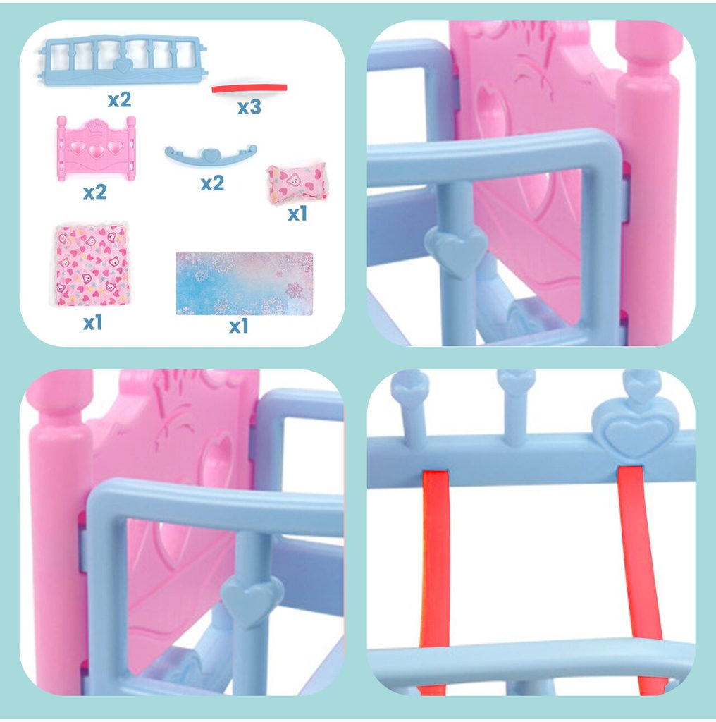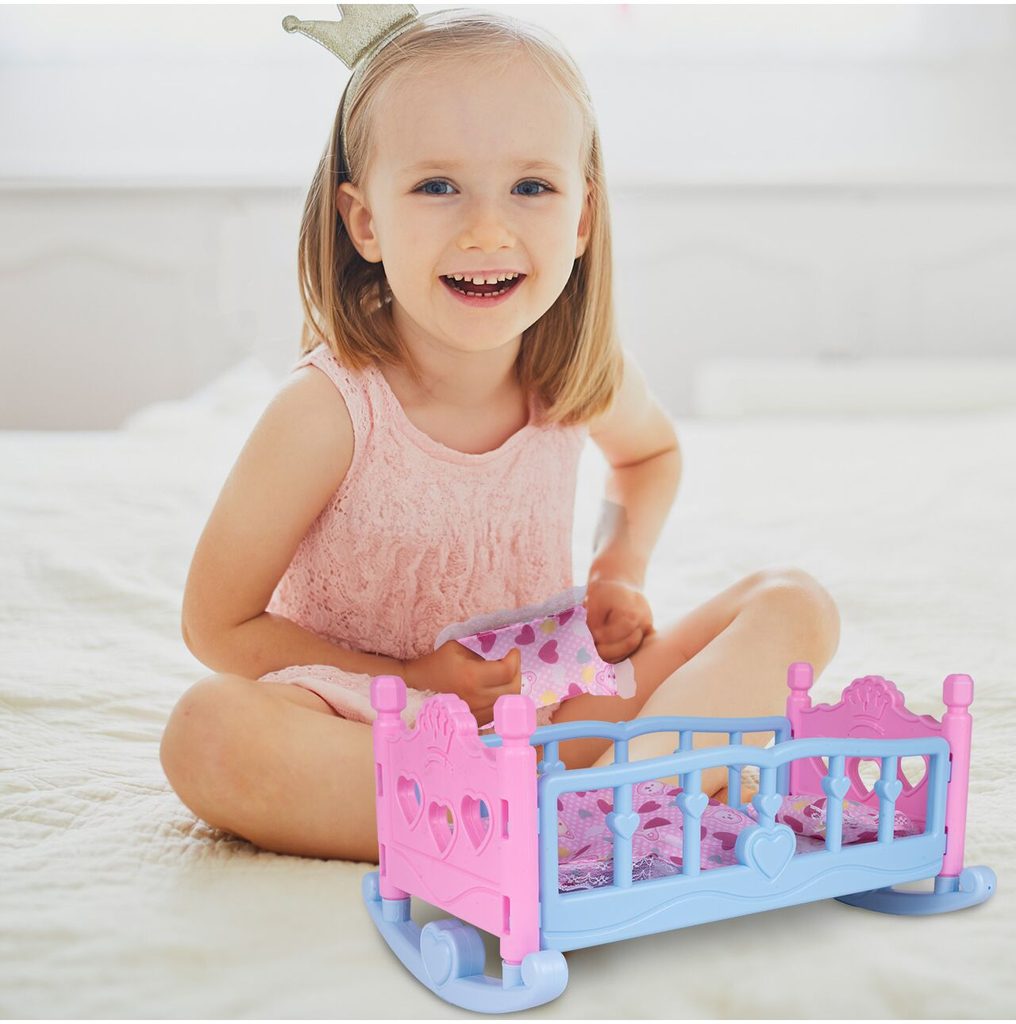 Postýlka pro panenky Play House musí být součástí pokojíčku každé malé princezny. Je vyrobena z kvalitního plastu, po stranách jsou otvory. Aby se panenka cítila pohodlně je součástí postýlky také peřinka a polštářek. Postýlku je možné využít i pro uschování jiných hraček. Hračka je určena pro děti od 36 měsíců věku.