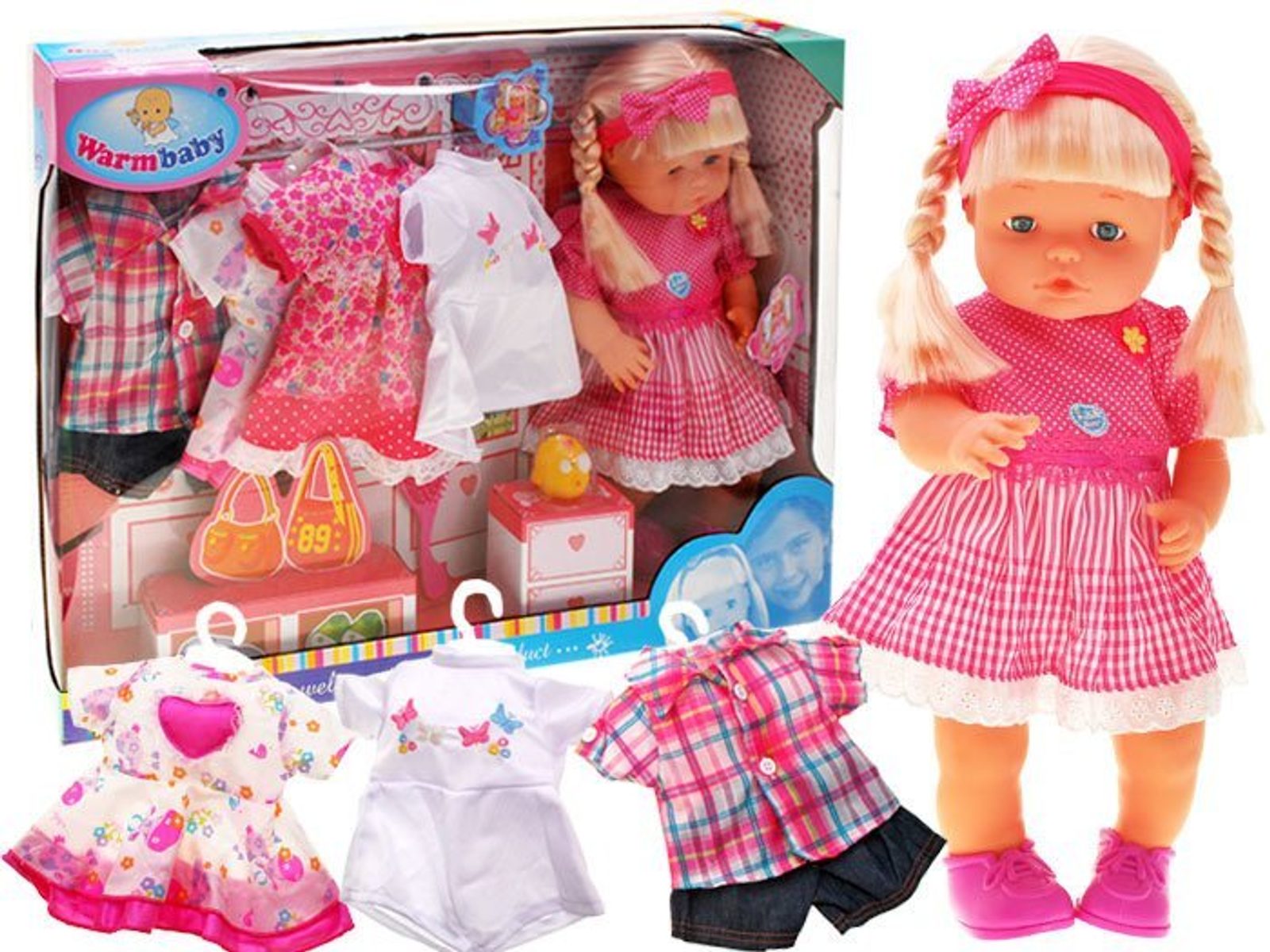 Nádherná převlékací panenka Emma s příslušenstvím udělá ohromnou radost každé holčičce. Součástí sestavy je kromě panenky o výšce 39 cm také náhradní oblečení. Dítě zde najde 4 různé šatičky, krátké kalhoty, halenku, botičky a další příslušenství jako je kartáč a gumička na vlasy a také malinká hračka. Hra s touto panenkou tak bude nekonečná. Hračka je určena pro děti od 18 měsíců věku.