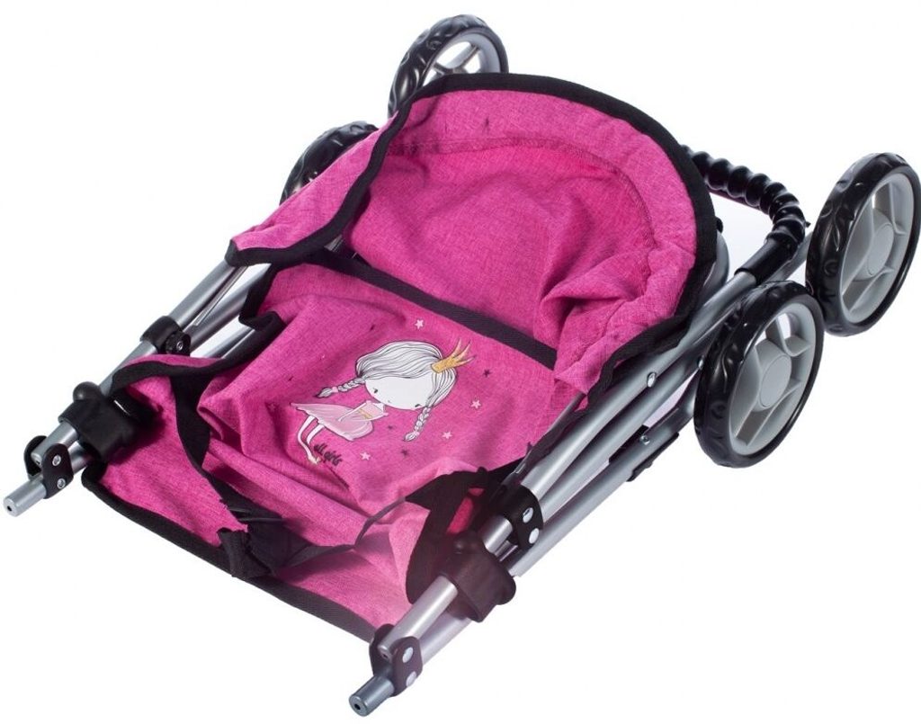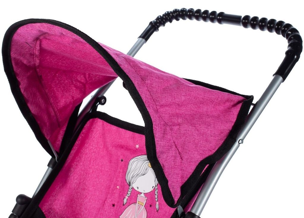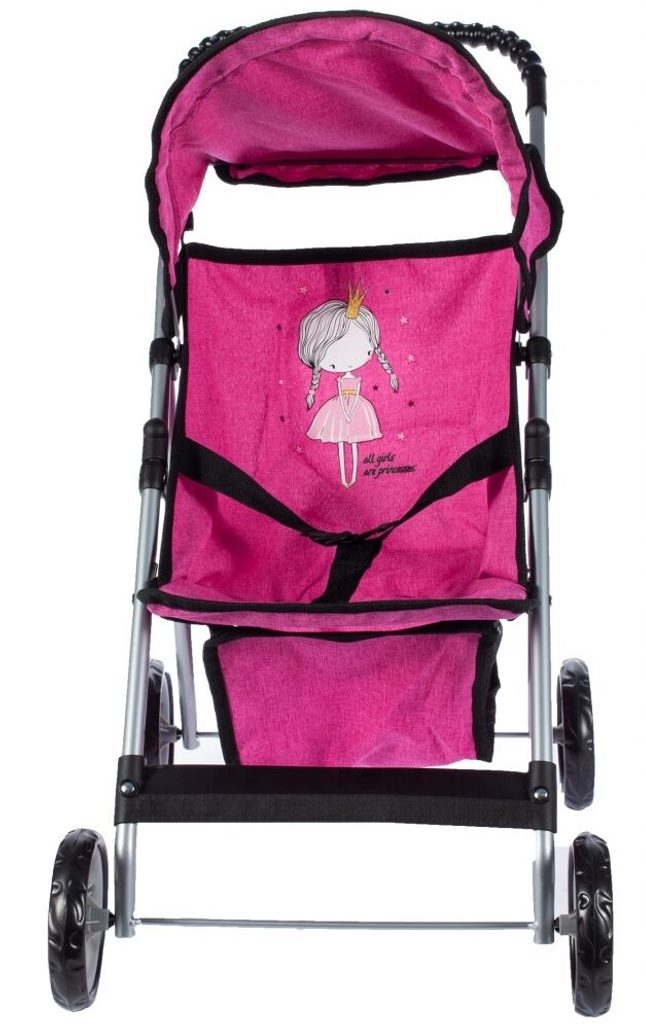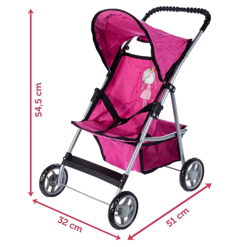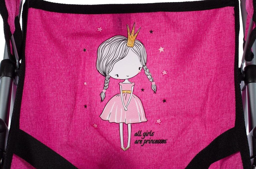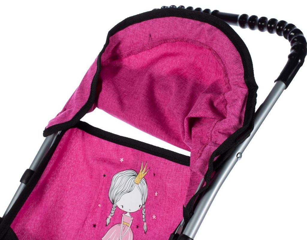 Sportovní kočárek pro panenky Rose Princess má velmi lehkou stabilní konstrukci vyrobenou z hliníkových trubek. Na sedátku je obrázek princezny. Před automatickým složením chrání dítě blokace. Panenku lze zabezpečit pásem. Ve spodní části je umístěný košík na drobnosti. Pěnová kola s disky nezanechávají šmouhy na podlaze. Kočárek je určen pro holčičky od 3 let.