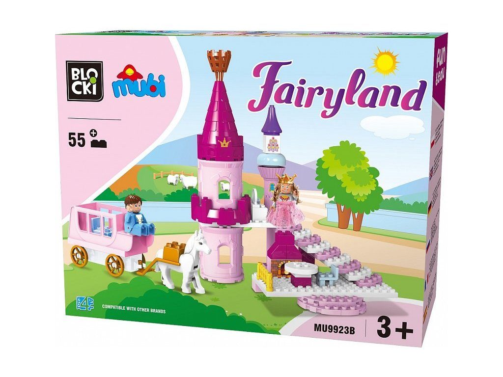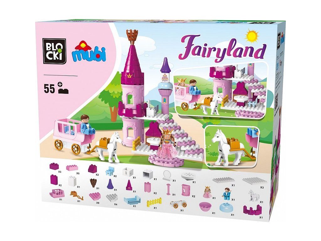 Stavebnice Blocki Mubi Pohádkový zámek udělá z Vašeho dítěte pravou princeznu. Pohádkový palác s příslušenstvím v nádherném barevném provedení. Součástí stavebnice jsou figurky prince a princezny a také koník. Stavebnice zaručí dětem mnoho hodin zábavy, pomůže jim rozvíjet kreativitu, manuální dovednosti a zlepšuje logické myšlení. Stavebnice je kompatibilní se stavebnicemi ostatních světových značek jako je Lego Duplo a další. Všechny dílky stavebnice se velmi snadno propojují a jsou vyrobeny z kvalitního plastu. Tato stavebnice je určena pro děti od 3 let věku.