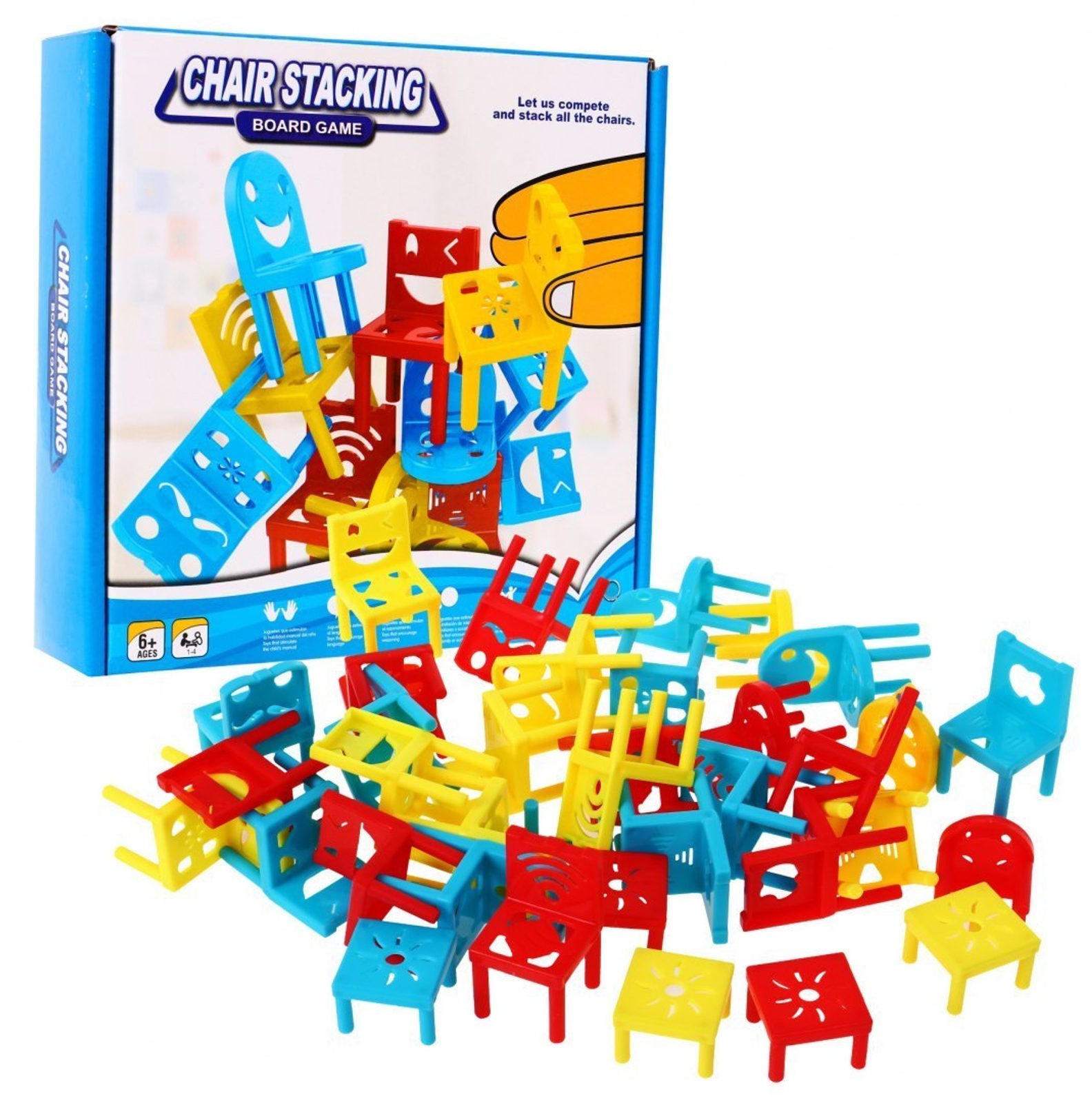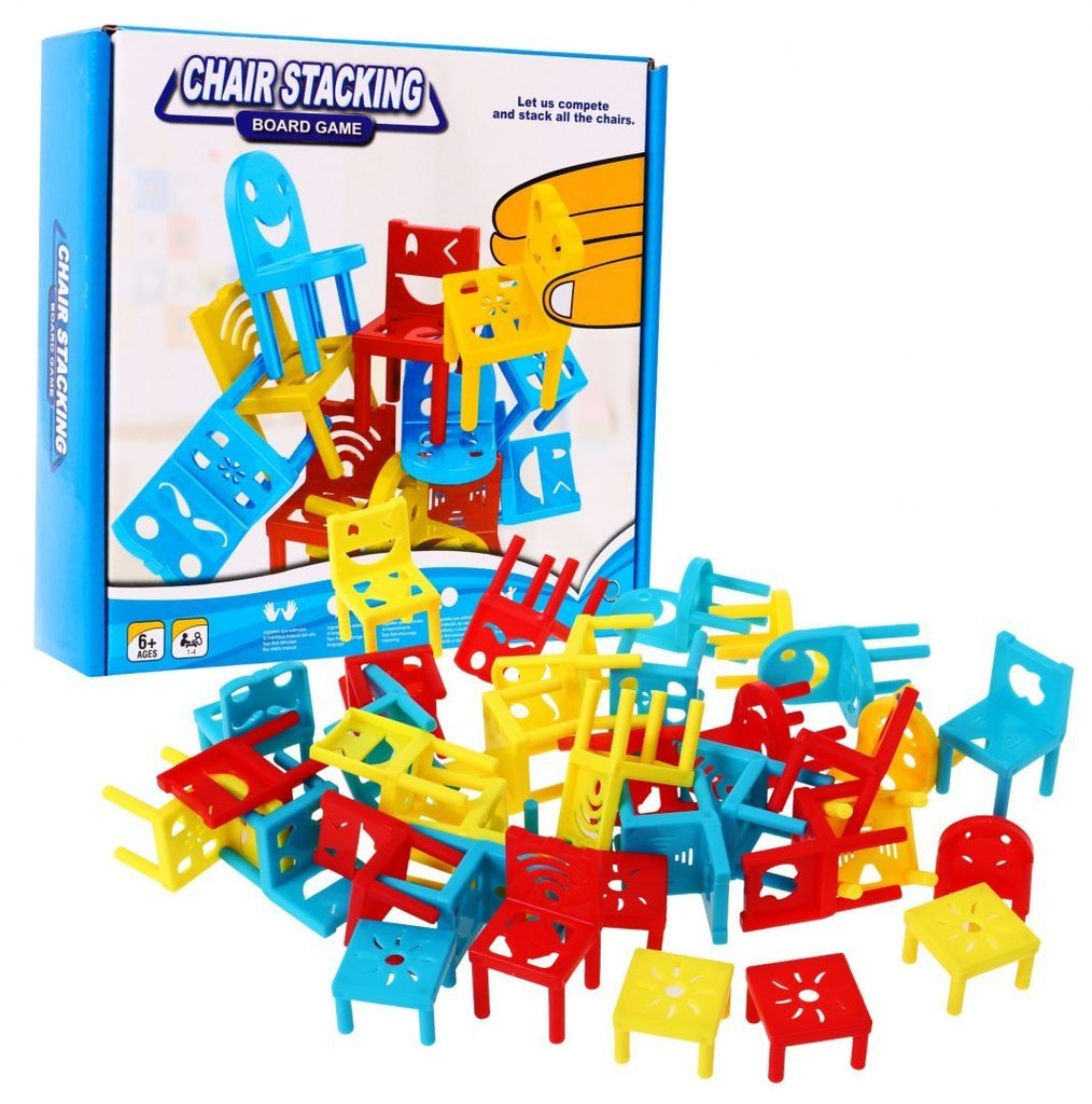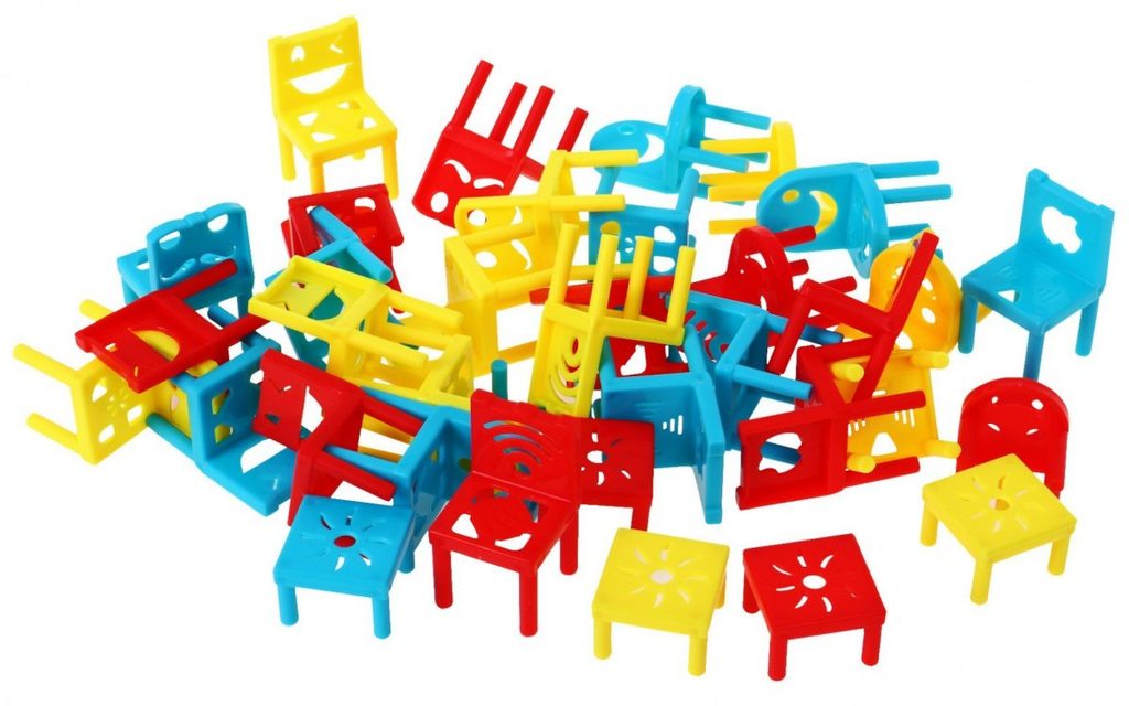 Dětská vědomostní hra Veselé židličky je určena pro děti a klidně i pro dospělé. Rozvíjí obratnost, koncentraci a trpělivost. Smyslem hry postavit kompletní věž a využít při tom všechny součásti hry. Důležité je nedotýkat se již postavených židliček. Vyhrává ten kdo jako poslední umístí poslední židličku do věže aniž by spadla. Hračka je vyrobená z plastu a určena pro děti od 6 let.