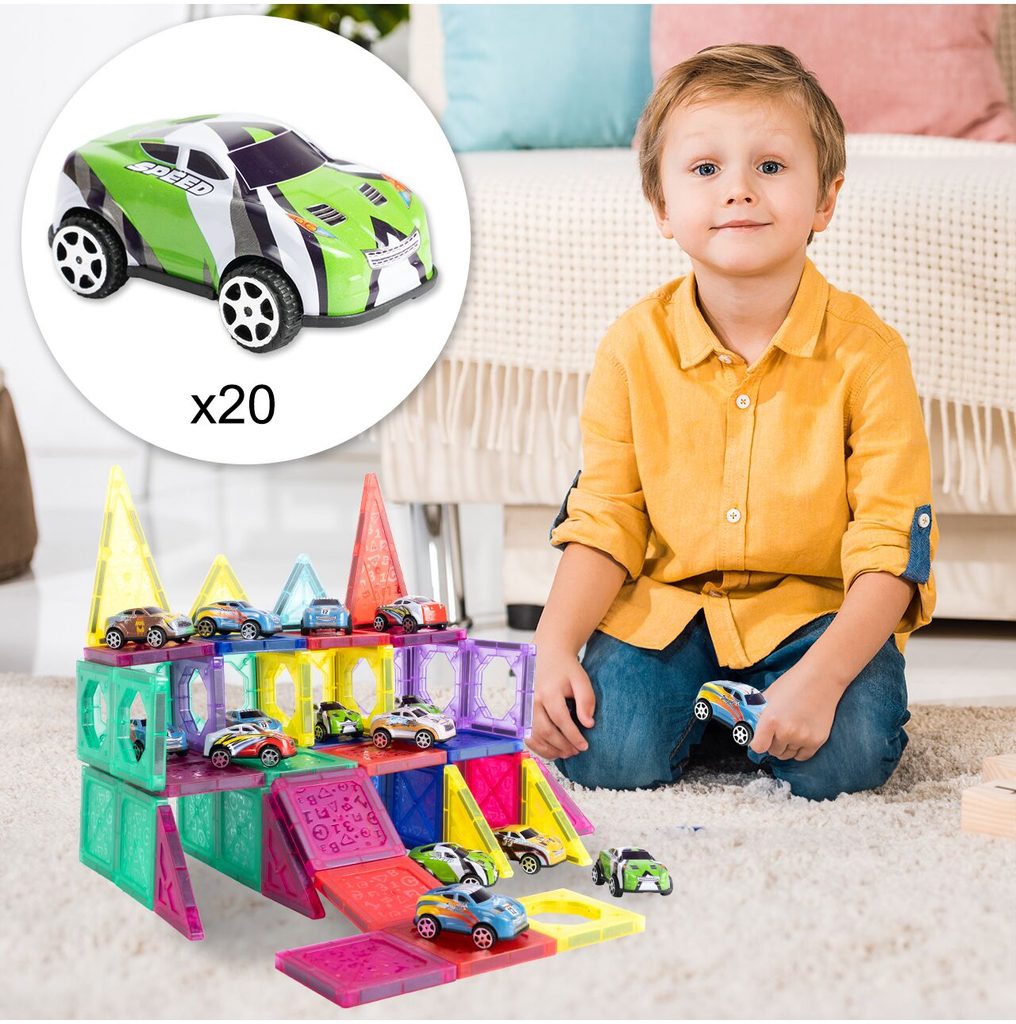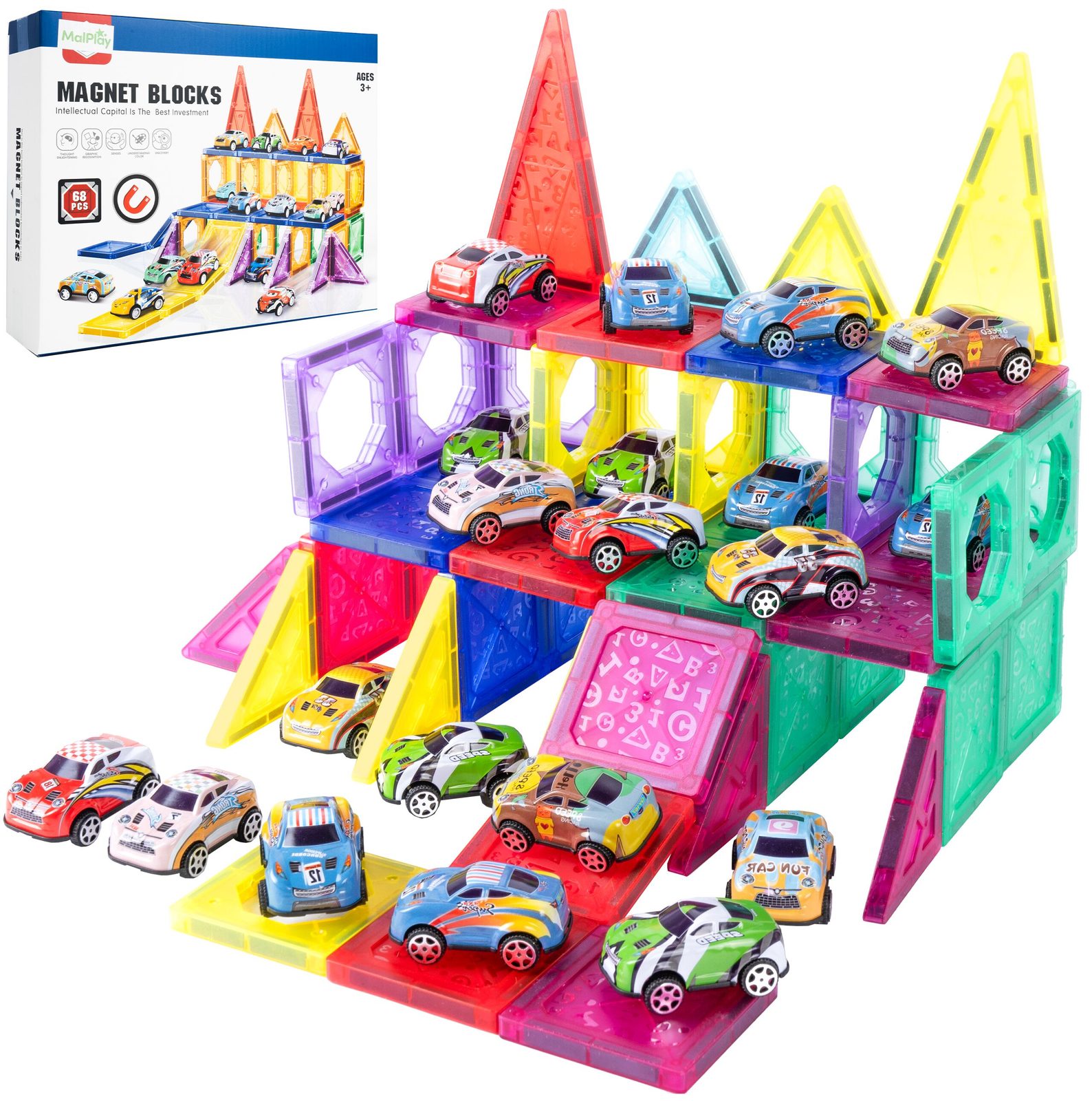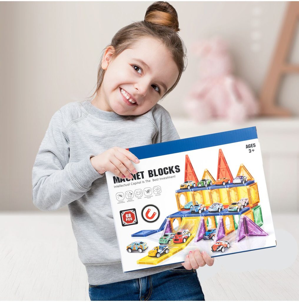 Barevná magnetická stavebnice Magnet Blocks je ideální hračkou pro všechny malé konstruktéry. Skládá se z celkem 68 součástí jako jsou konstrukční elementy, čtverce a trojúhelníky. Součástí stavebnice je také 20 barevných autíček. Všechny součásti se velmi snadno propojují a lze z nich vytvořit velké množství plošných, vozítek a 3D tvarů. Hračka je určena pro děti od 3 let věku.