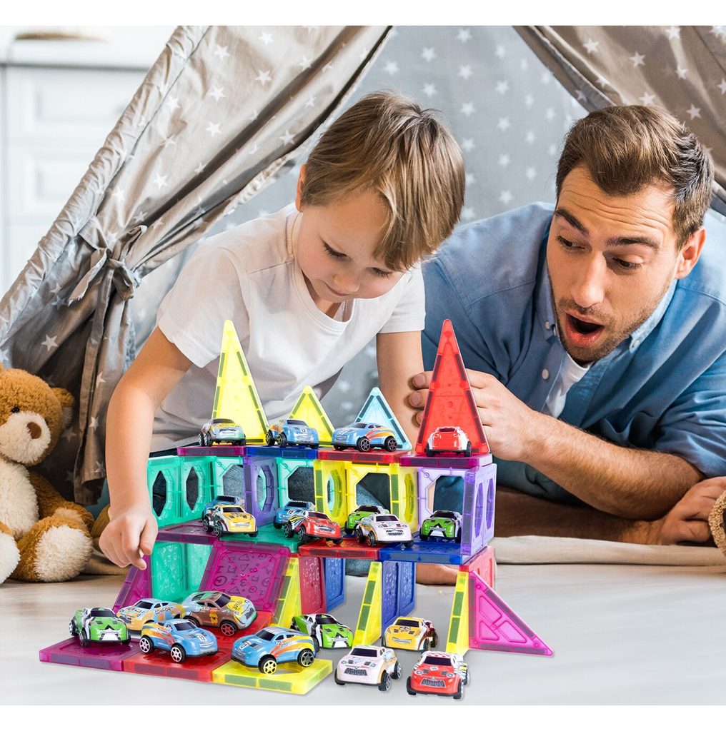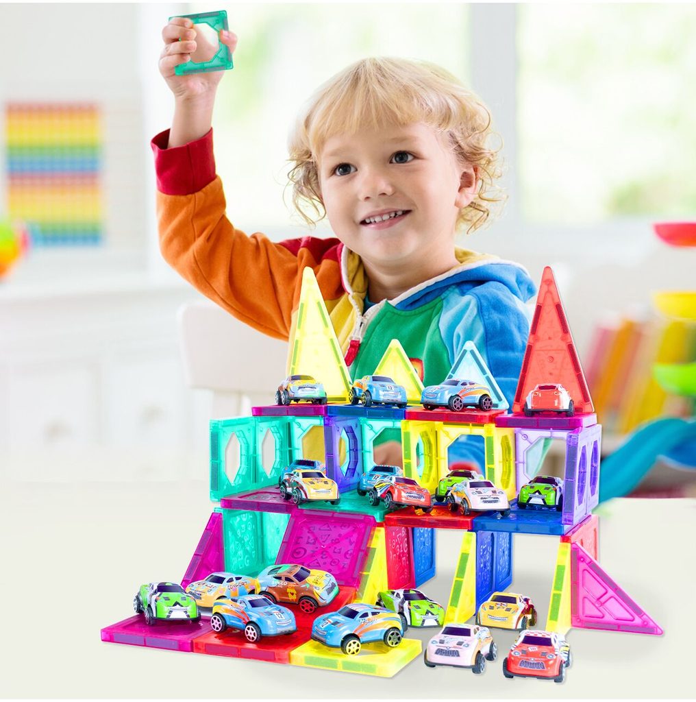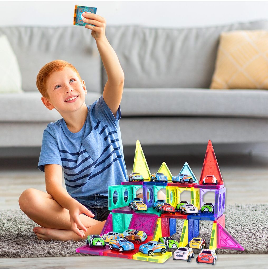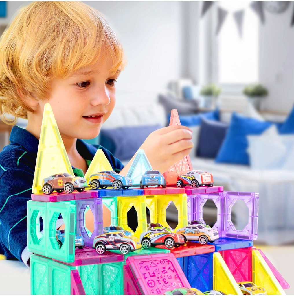 Barevná magnetická stavebnice Magnet Blocks je ideální hračkou pro všechny malé konstruktéry. Skládá se z celkem 68 součástí jako jsou konstrukční elementy, čtverce a trojúhelníky. Součástí stavebnice je také 20 barevných autíček. Všechny součásti se velmi snadno propojují a lze z nich vytvořit velké množství plošných, vozítek a 3D tvarů. Hračka je určena pro děti od 3 let věku.