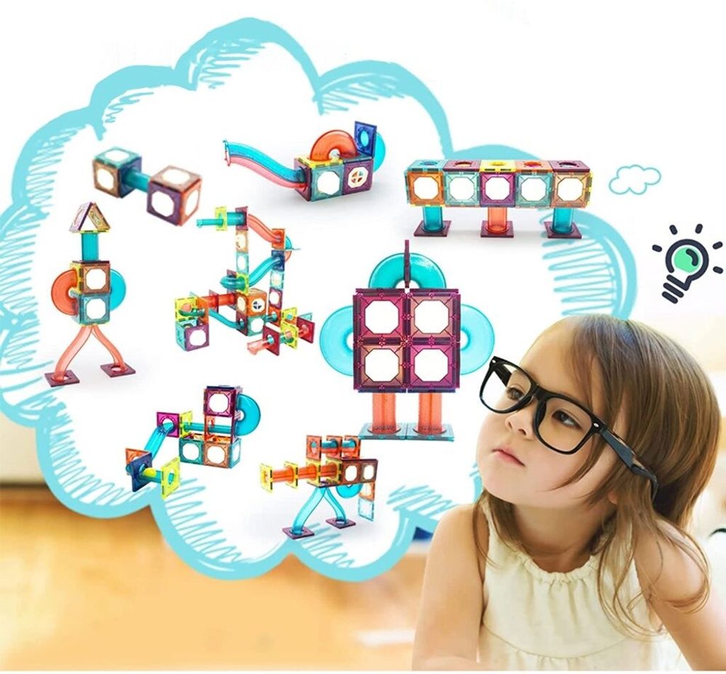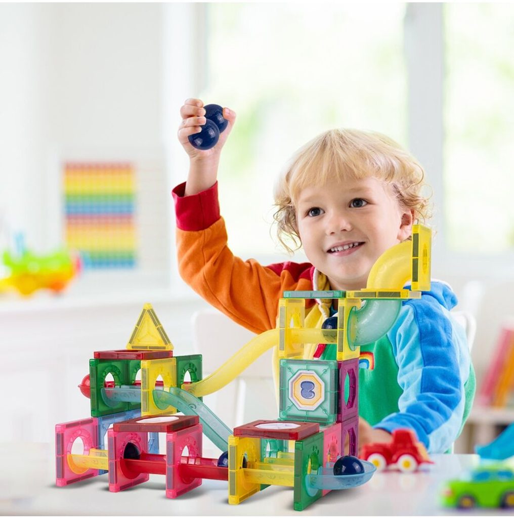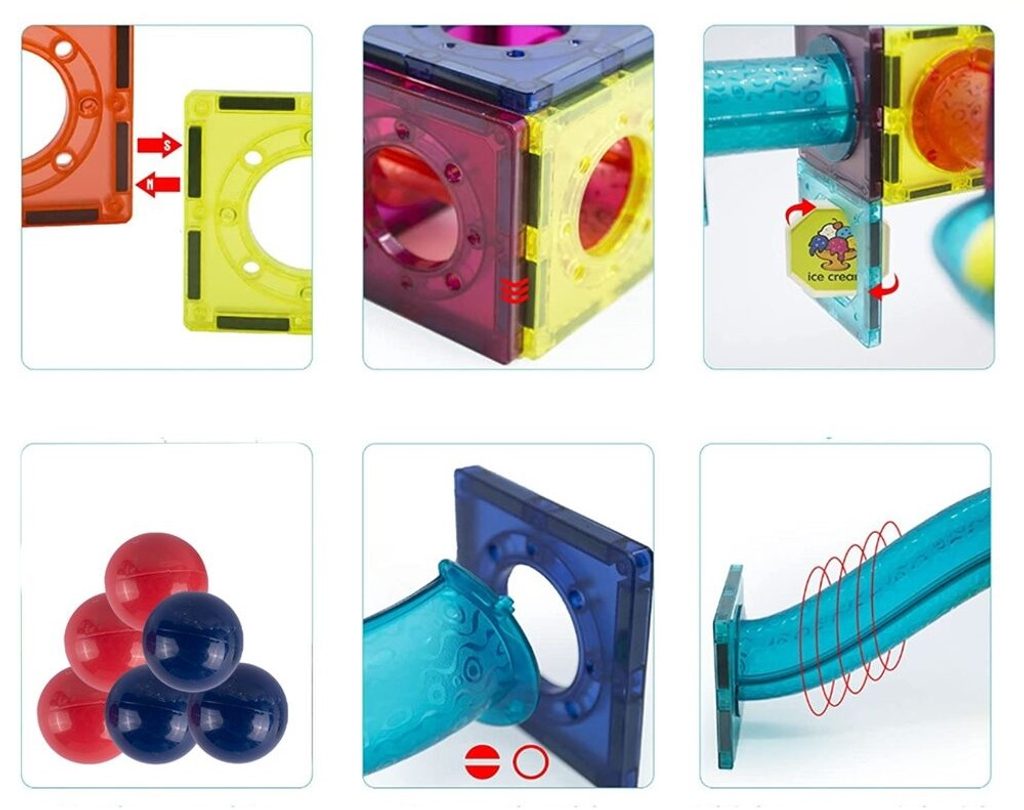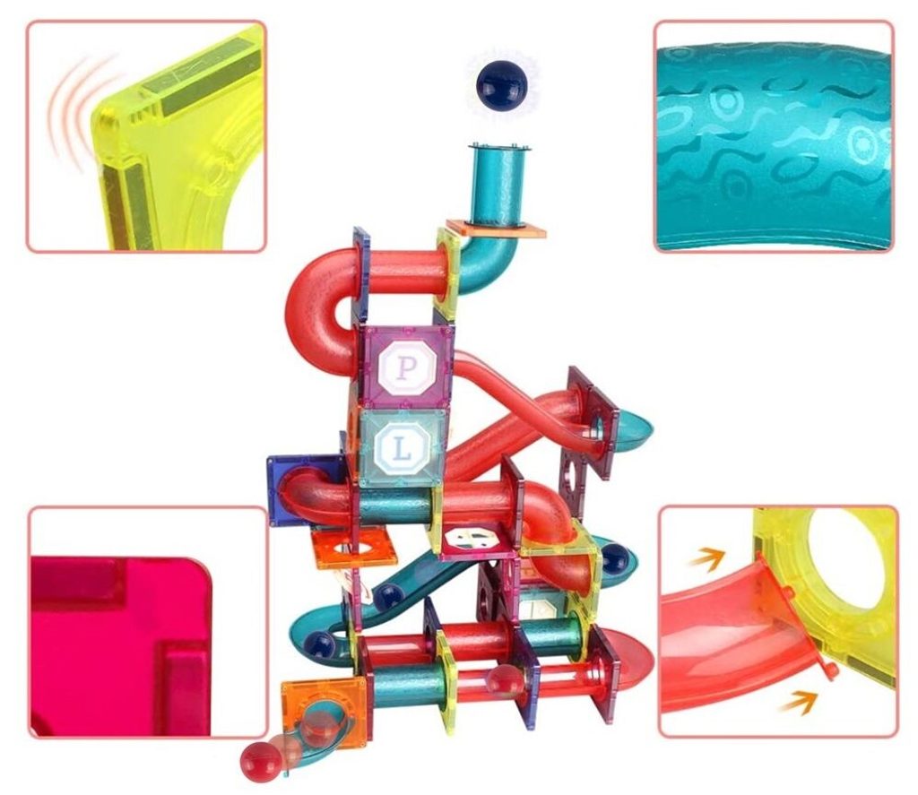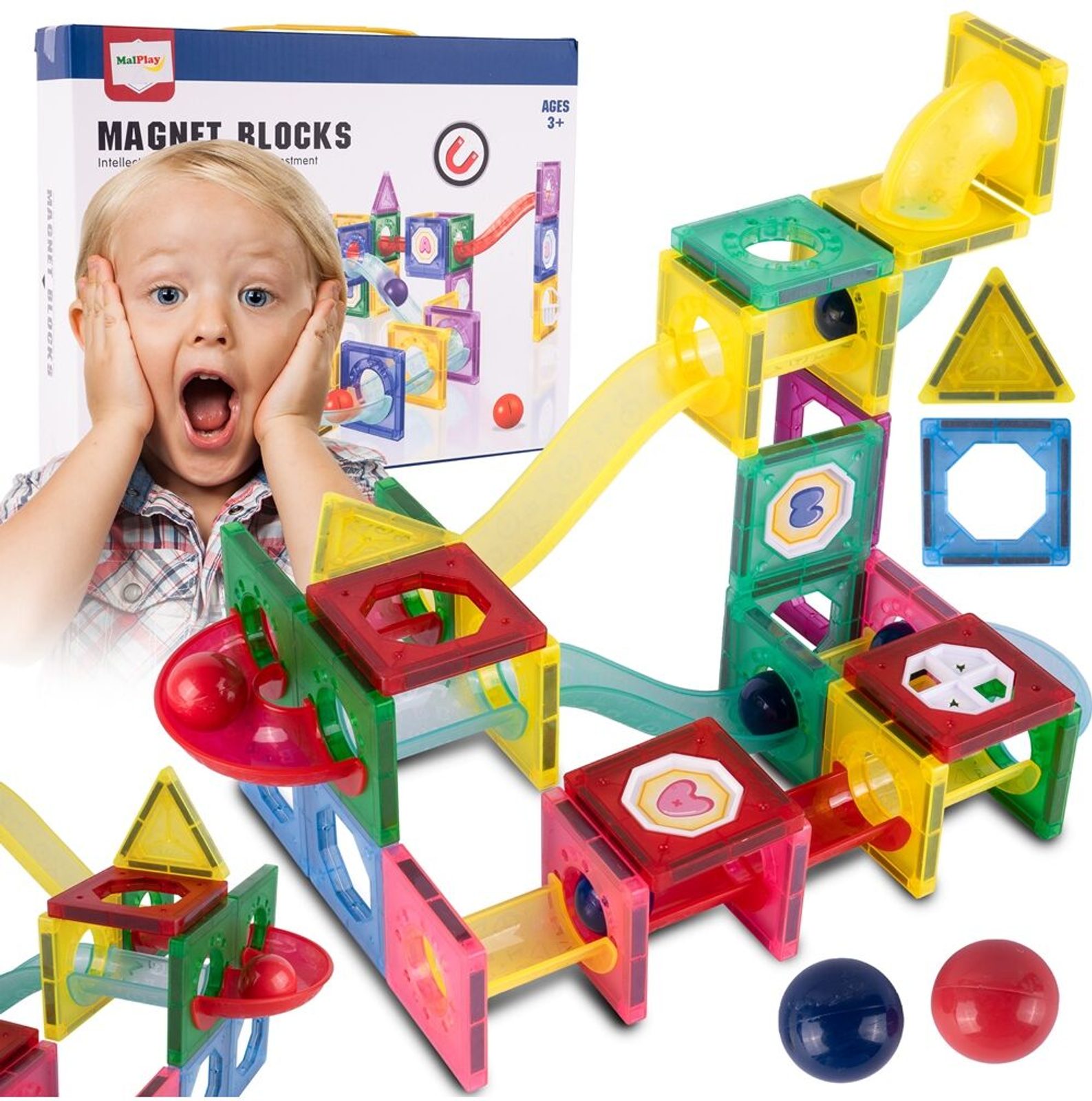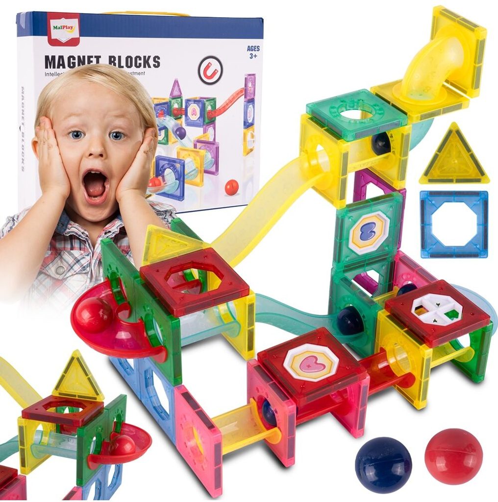 Barevná magnetická stavebnice se skluzavkou Magnet Blocks je ideální hračkou pro všechny malé konstruktéry. Skládá se z celkem 78 součástí jako jsou konstrukční elementy, části skluzavky, čtverce, trojúhleníky, obdélníky a další. Všechny součásti se velmi snadno propojují a lze z nich vytvořit velké množství plošných a 3D tvarů. Hračka je určena pro děti od 3 let věku.