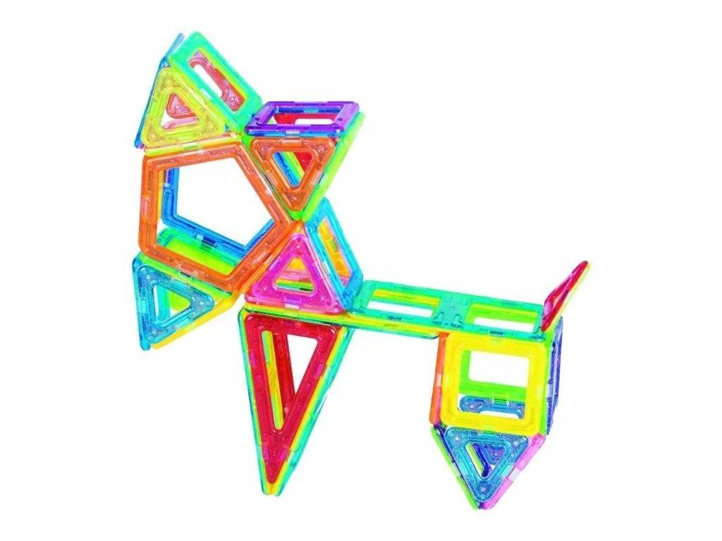 Barevná magnetická stavebnice Magical Magnet je ideální hračkou pro všechny malé konstruktéry. Skládá se z celkem 86 součástí jako jsou čtverce, trojúhelníky, kosočtverce, obdélníky, šestiúhelníky, podvozky s koly a samolepky. Všechny součásti se velmi snadno propojují a vytváří z nich různé konstrukce. Hračka je určena pro děti od 3 let věku.