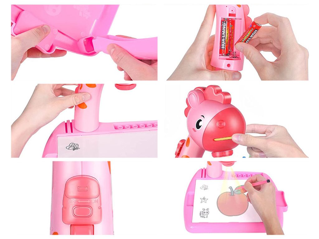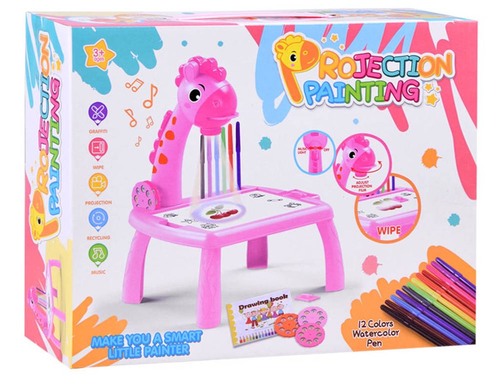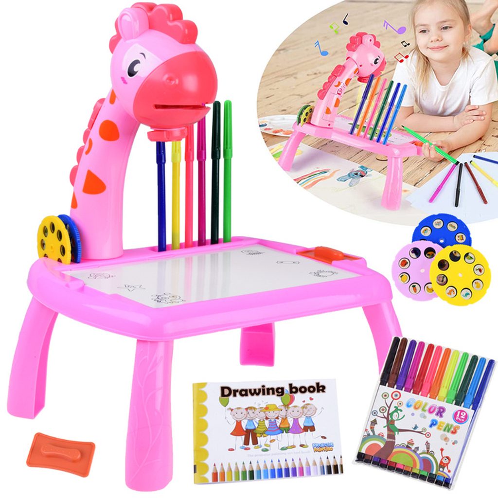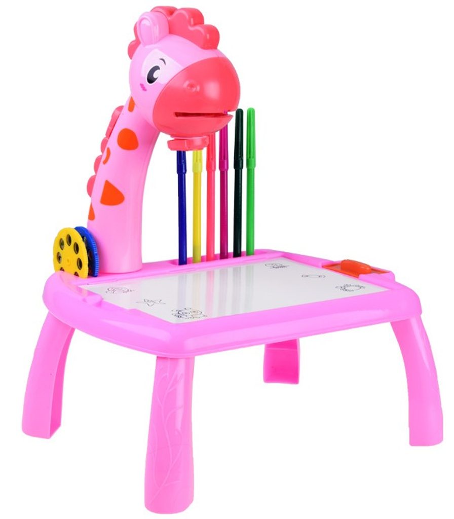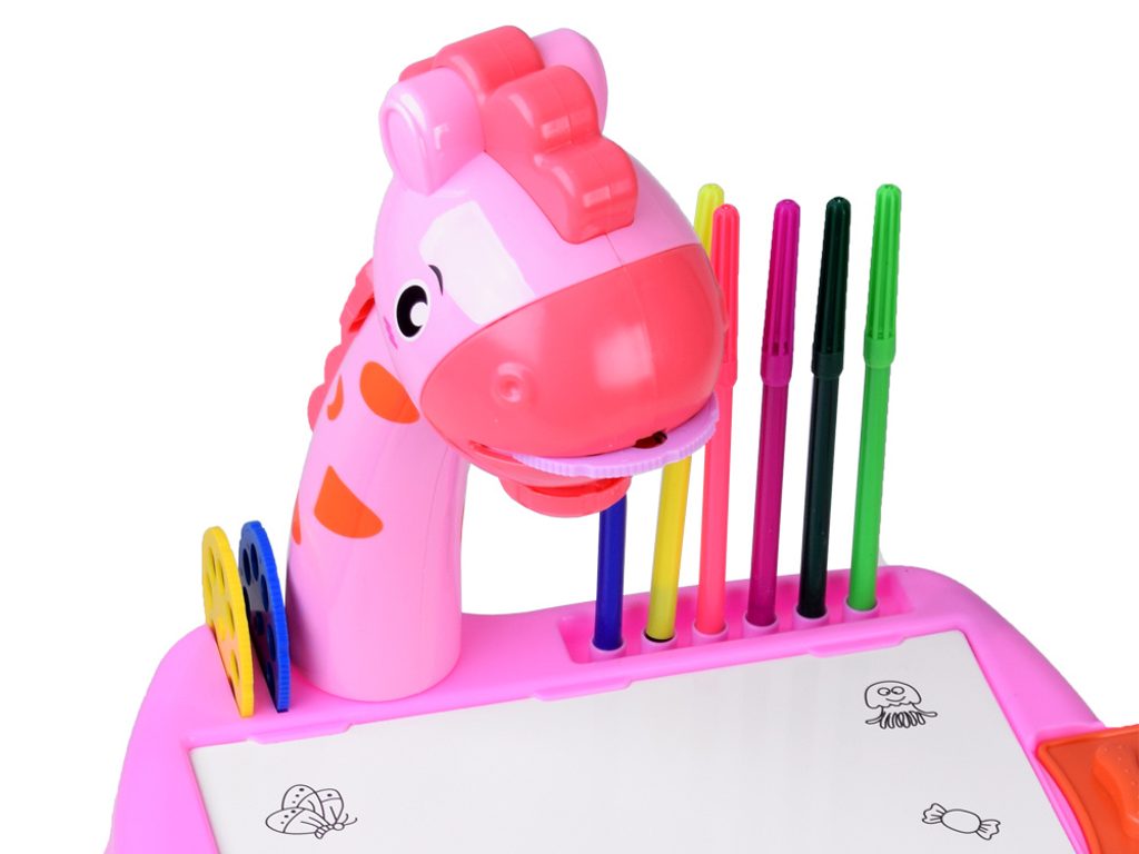 Projektor s kreslící tabulkou a 24 šablonami Žirafa - růžový