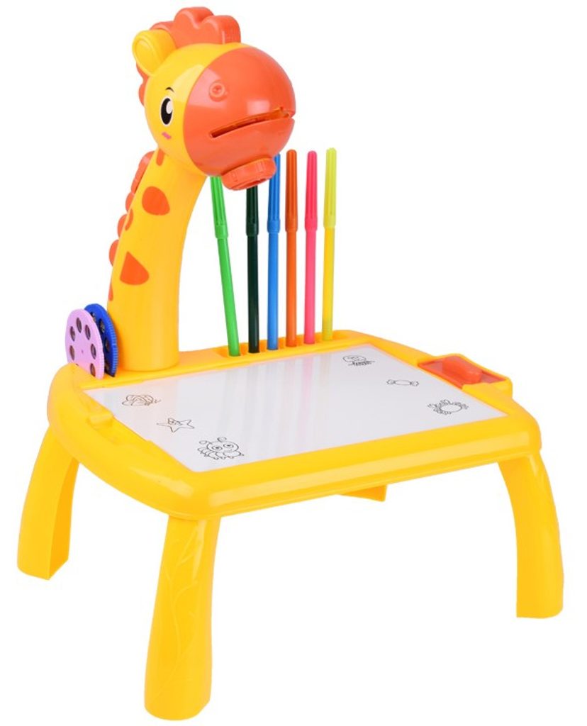 Projektor s kreslící tabulkou a 24 šablonami Žirafa - žlutý