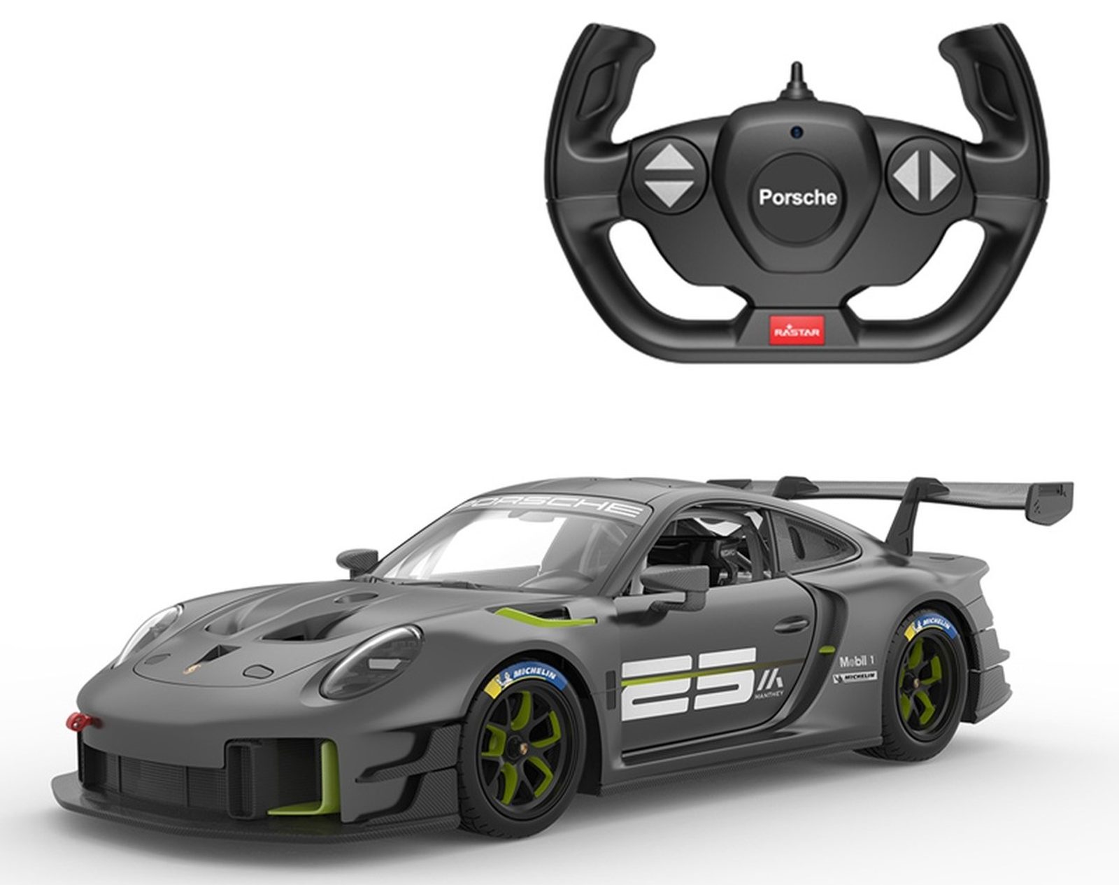 Rastar autíčko na dálkové ovládání Porsche GT2 RS Clubsport s dálkovým ovladáním 2,4GHz umožňuje jízdu dopředu a dozadu, zatáčí doprava a doleva. Je osazeno gumovými koly s velmi dobrou přilnavostí a je vybaveno tlumiči nárazů. Dálkové ovládání je napájeno bateriemi, které nejsou součástí balení. Autíčko je vyrobeno z odolného plastu a má certifikaci CE.