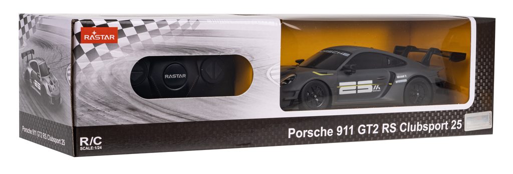 Rastar autíčko na dálkové ovládání Porsche GT2 RS Clubsport s dálkovým ovladáním 2,4G umožňuje jízdu dopředu a dozadu, zatáčí doprava a doleva. Je osazeno gumovými koly s velmi dobrou přilnavostí a je vybaveno tlumiči nárazů. Dálkové ovládání je napájeno bateriemi, které nejsou součástí balení. Autíčko je vyrobeno z odolného plastu a má certifikaci CE.