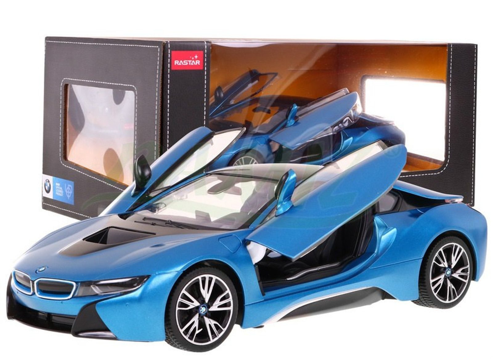 Rastar auto na dálkové ovládání BMW i8 s dálkovým ovládáním 2,4 GHz umožňuje jízdu dopředu a dozadu, zatáčí doprava a doleva. Je osazeno gumovými koly s velmi dobrou přilnavostí a je vybaveno tlumiči nárazů. Je vybaveno předním a zadním LED osvětlením. Dálkové ovládání i autíčko jsou napájeny bateriemi, které nejsou součástí balení. Autíčko je vyrobeno z odolného plastu a má certifikaci CE.
