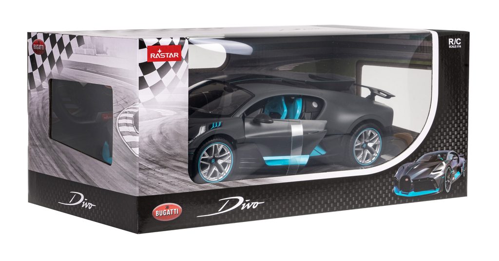 Rastar auto na dálkové ovládání Bugatti Divo s dálkovým ovládáním 2,4 GHz umožňuje jízdu dopředu a dozadu, zatáčí doprava a doleva. Je osazeno gumovými koly s velmi dobrou přilnavostí a je vybaveno tlumiči nárazů. Je vybaveno předním a zadním LED osvětlením. Dálkové ovládání i autíčko jsou napájeny bateriemi, které nejsou součástí balení. Autíčko je vyrobeno z odolného plastu a má certifikaci CE.