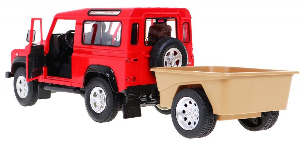 Rastar auto na dálkové ovládání Land Rover Defender s dálkovým ovládáním 27/40MHz umožňuje jízdu dopředu a dozadu, zatáčí doprava a doleva. Je osazeno gumovými koly s velmi dobrou přilnavostí a je vybaveno tlumiči nárazů. Přední a zadní dveře jsou otevírací. Součástí autíčka je také efektní přívěsný vozíček. Dálkové ovládání i autíčko jsou napájeny bateriemi, které nejsou součástí balení. Autíčko je vyrobeno z odolného plastu a má certifikaci CE.