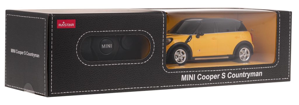Rastar auto na dálkové ovládání Mini Cooper S Countryman s dálkovým ovládáním 2,4 GHz umožňuje jízdu dopředu a dozadu, zatáčí doprava a doleva. Je osazeno gumovými koly s velmi dobrou přilnavostí a je vybaveno tlumiči nárazů. Dálkové ovládání i autíčko jsou napájeny bateriemi, které nejsou součástí balení. Autíčko je vyrobeno z odolného plastu a má certifikaci CE.