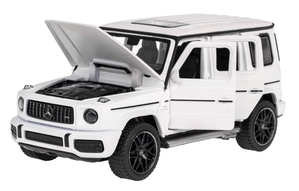 Rastar kovové autíčko Mercedes AMG G63 umožňuje jízdu dopředu a dozadu, zatáčí doprava a doleva. Je osazeno gumovými koly s velmi dobrou přilnavostí. Dveře a kapota jsou otevírací. Autíčko je vyrobeno z odolného kovu plastu a má certifikaci CE.