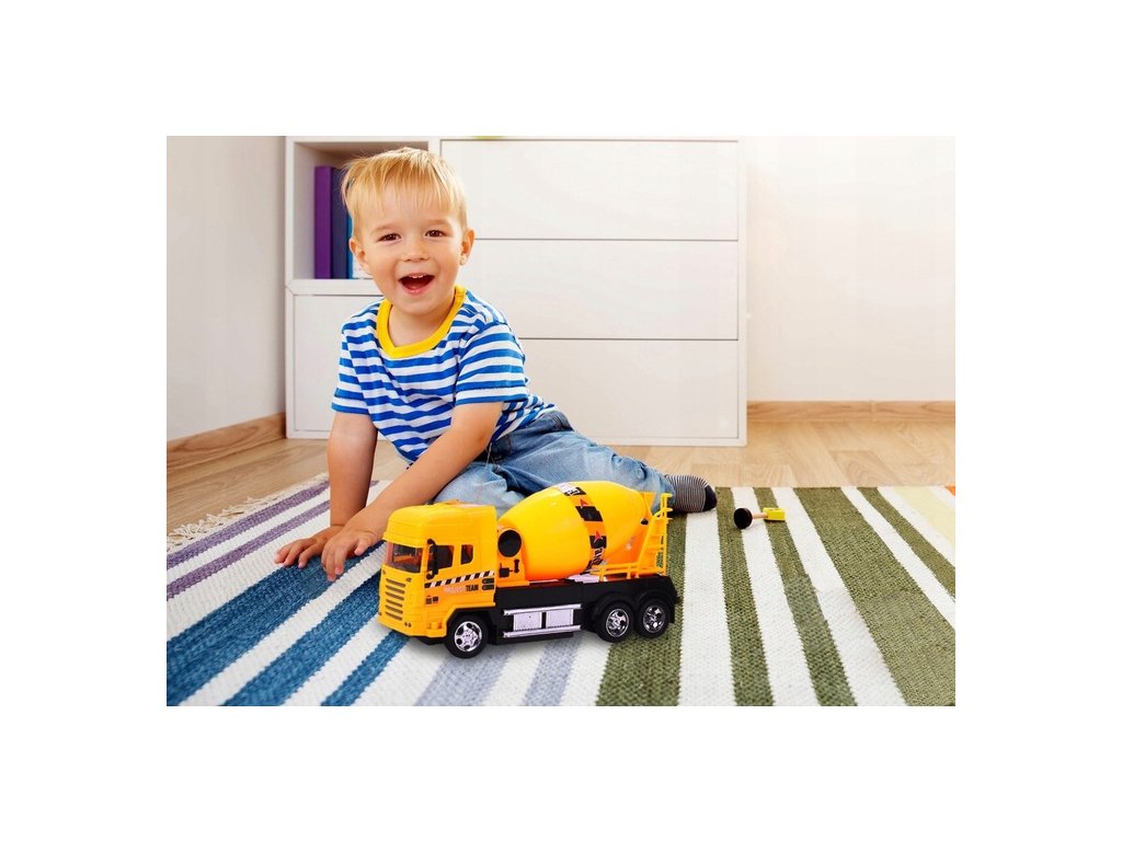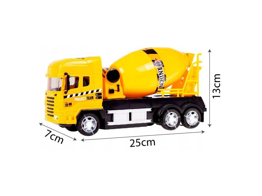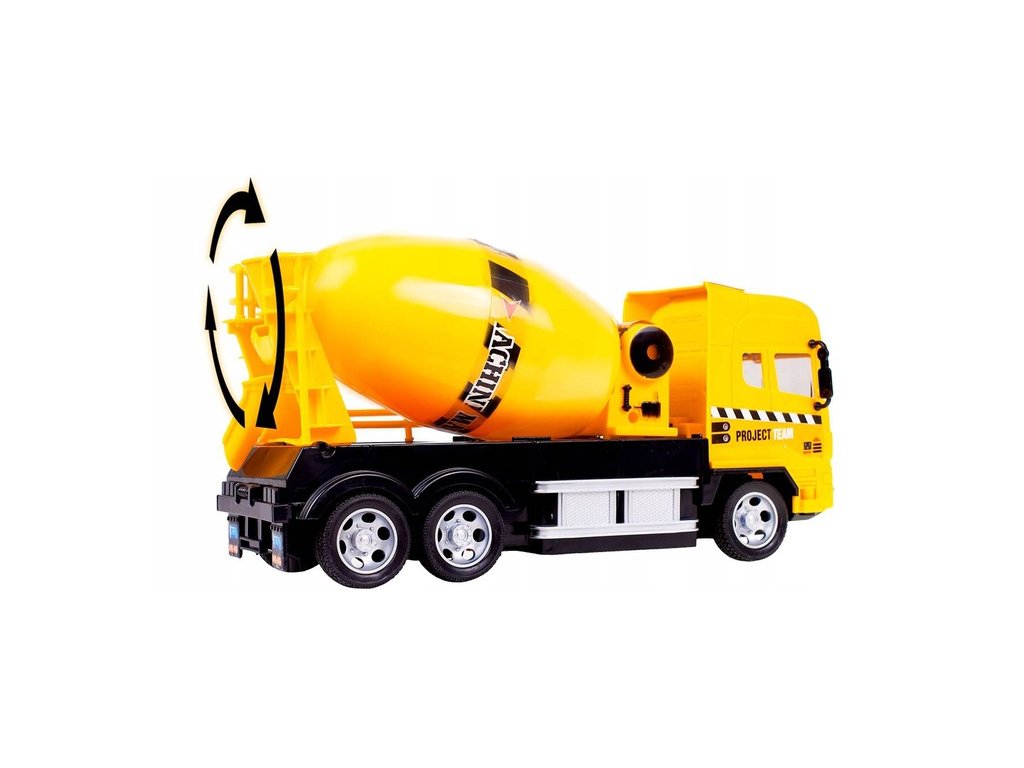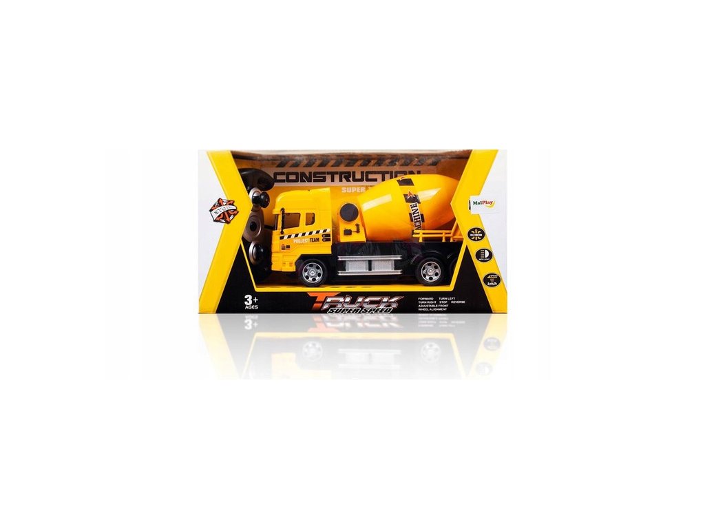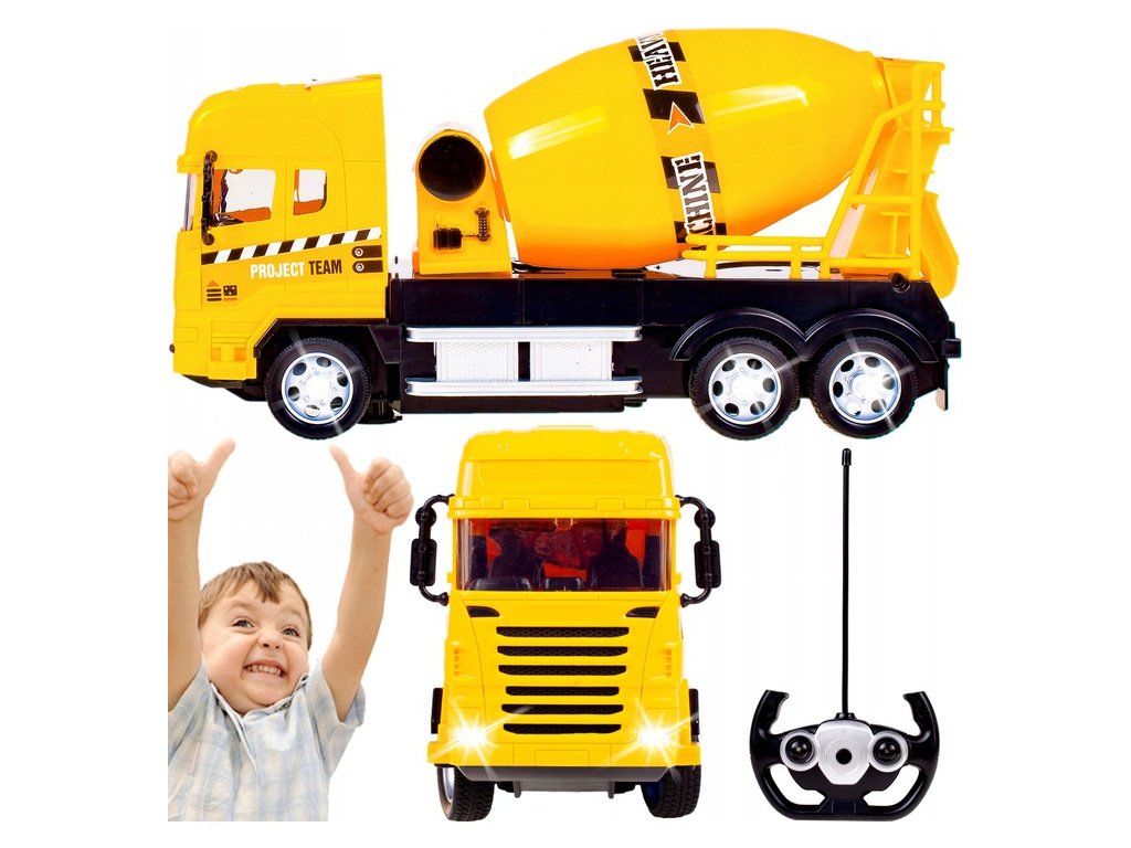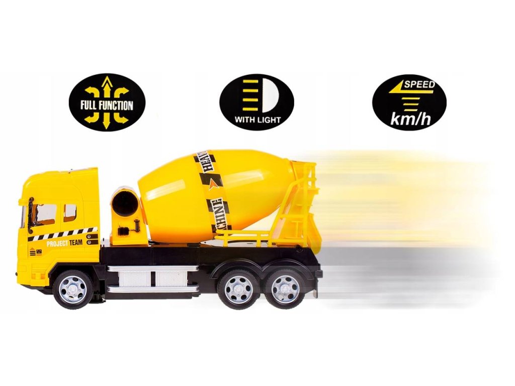 Auto s dálkovým ovládáním 27MGz v provedení míchačky na beton umožnuje jízdu dopředu a dozadu, zatáčí doprava a doleva. Během jízdy svítí přední světla. Součástí balení je dálkový ovladač s jednoduchým ovládáním změnu směru a jízdy vpřed a vzad. Ovladač je napájen bateriemi, které nejsou součástí balení. Autíčko je vyrobeno z odolného plastu a má certifikaci CE.