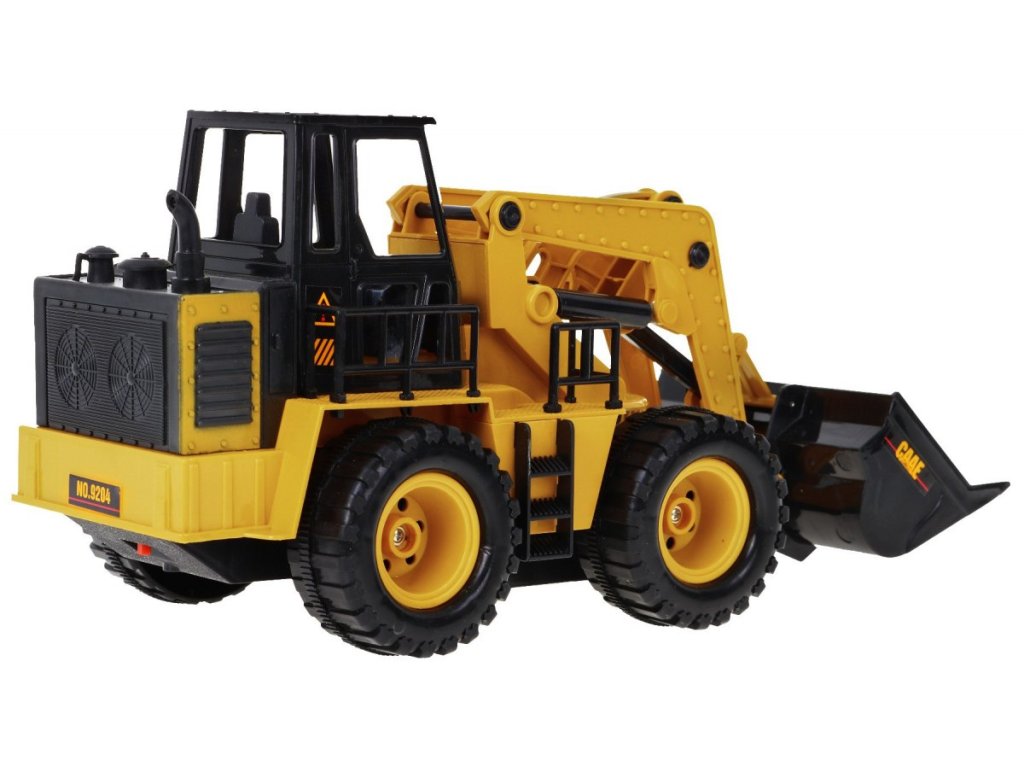 Buldozer na dálkové ovládání s dálkovým ovládáním 2,4G umožnuje jízdu dopředu a dozadu, má otáčecí kola doprava a doleva a pohyblivou lžíci, kterou lze nakládat materiál. Při jízdě dopředu vydává zvuky stavebního stroje, při jízdě dozadu pípá. Ovládání bagru je velmi jednoduché, pomocí dvou joysticků se ovládá směr a pomocí dvou tlačítek se zvedá nakládací lžíce. Součástí balení je akumulátor a USB nabíječka. Dálkové ovládání je napájeno bateriemi, které nejsou součástí balení. Bagr je vyroben z plastu a má certifikaci CE.