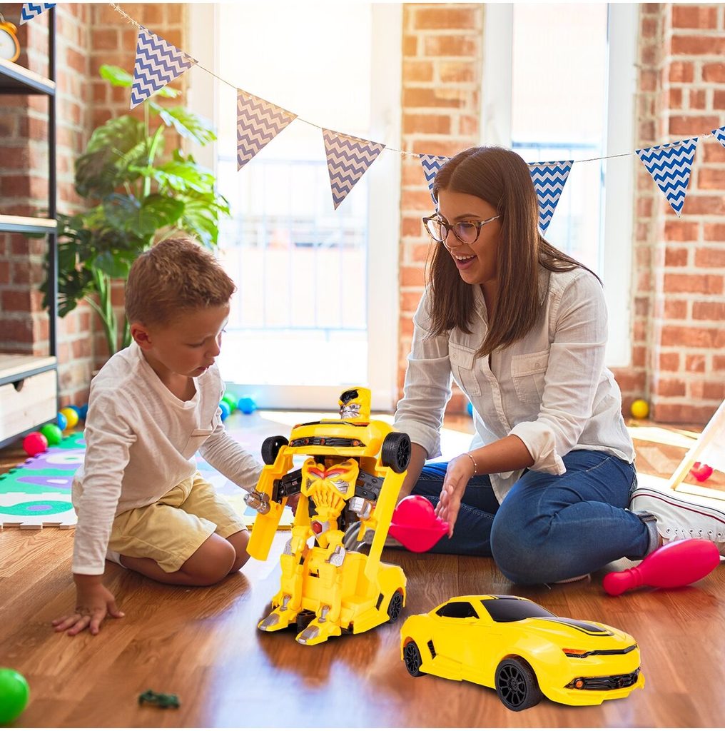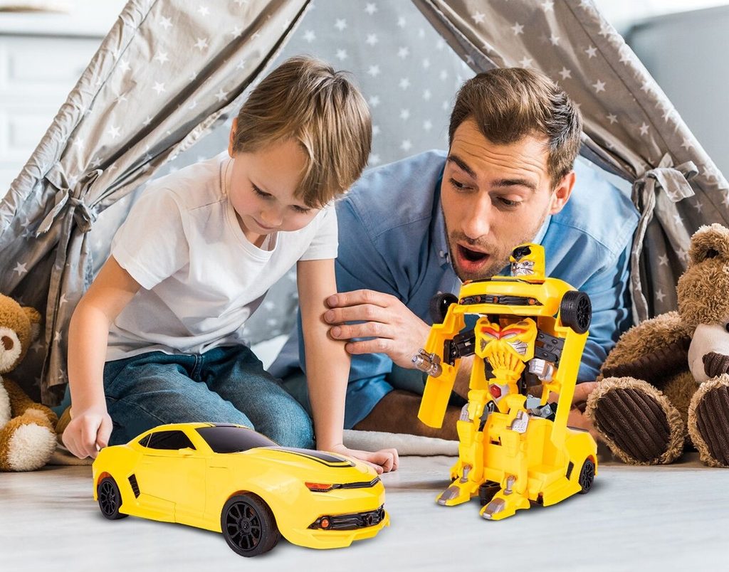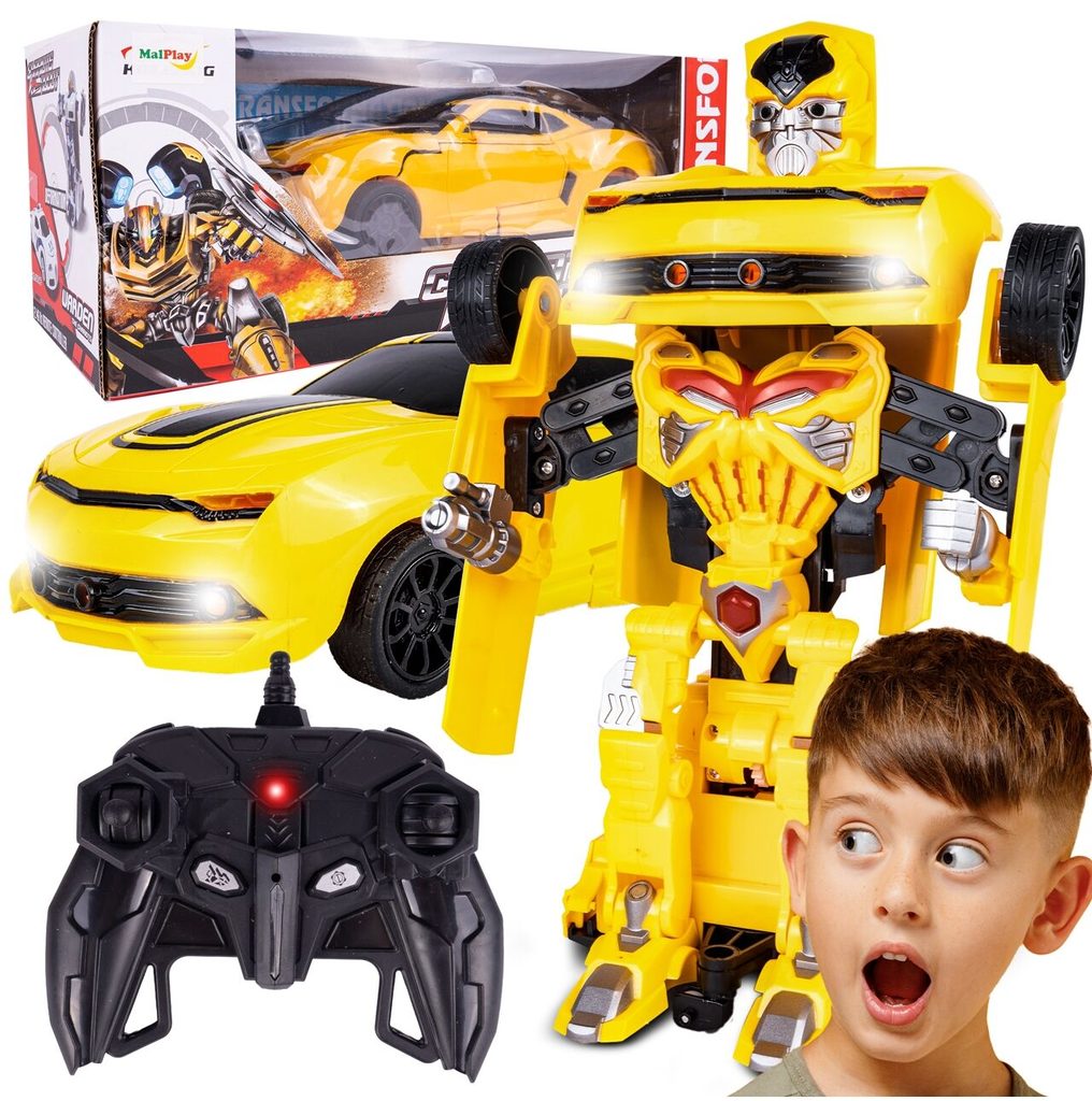 Dálkově ovládaný robot - transformer Chariots Robot je perfektní hračka pro děti, které mají rády technologické novinky. Lze ho využít jako robot nebo snadno přeměnit na sportovní auto. Je vybaven pohonem na přední kola, dálkovým ovládáním 2,4 GHz, světelnými a zvukovými efekty. Autíčko má zabudovaný 4,8V akumulátor, který snadno nabijete přiloženou USB nabíječkou. Hračka je určena pro děti od 3 let věku.