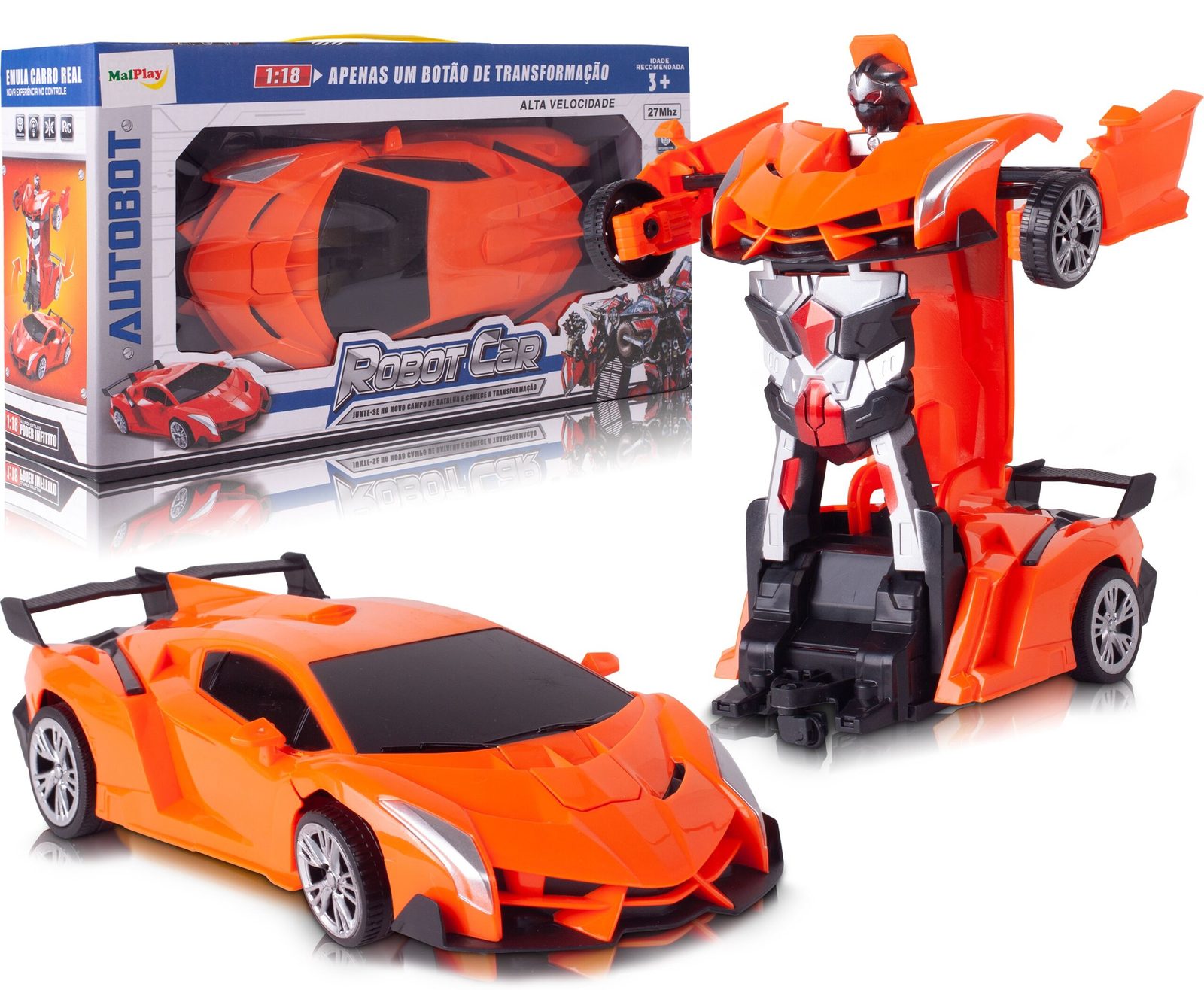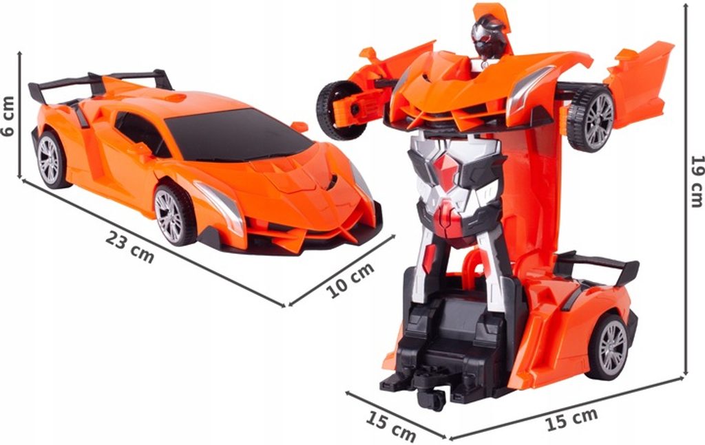 Dálkově ovládaný robot - transformer Robocar je perfektní hračka pro děti, které mají rády technologické novinky. Lze ho využít jako robot nebo snadno přeměnit na sportovní auto. Je vybaven pohonem na přední kola a dálkovým ovládáním 27 MHz. Hračka je určena pro děti od 6 let věku.