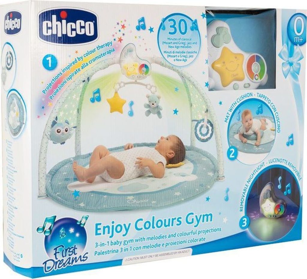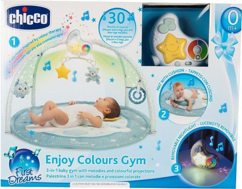Hrací deka s projekcí a melodiemi od Chicco je navržena pro maximální zábavu a relaxaci Vašeho miminka. Tato nádherná deka bude pro Vaše miminko magické místo, plné příjemné hudby a barevné projekce.