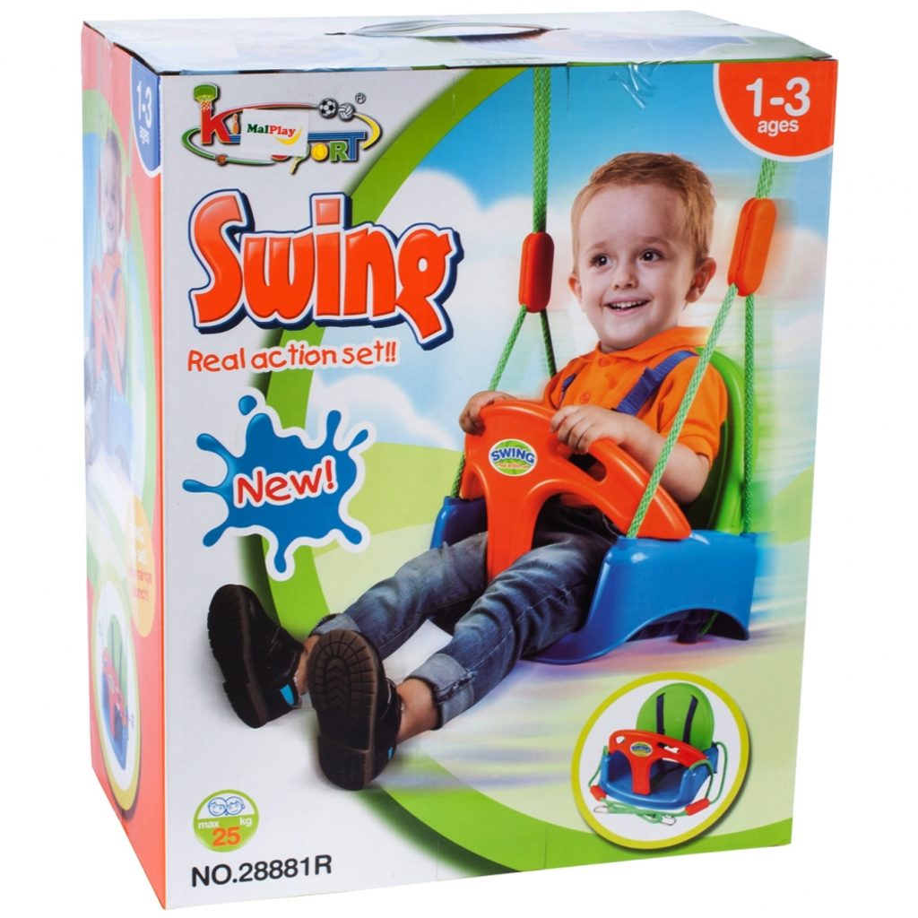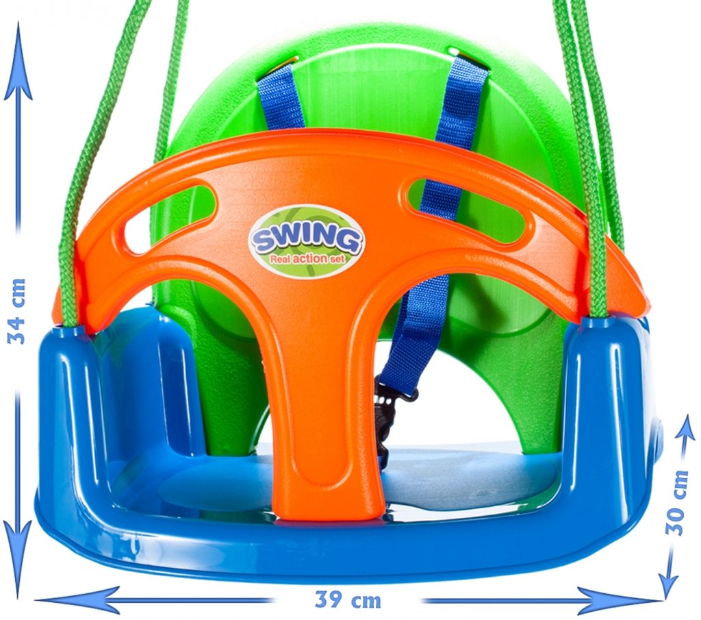 Dětská houpačka 3v1 Swing Sport je určena pro děti od 6 měsíců do 7 let věku. Je opatřena demontovatelným opěradlem a zábranou proti vypadnutí. Sedátko je vyrobeno z protiskluzového materiálu a je odolné proti povětrnostním vlivům. Délka závěsu je cca 100 cm a lze ji upravit pomocí kovových spon. Doporučená výška sedátka od země je 40 cm.