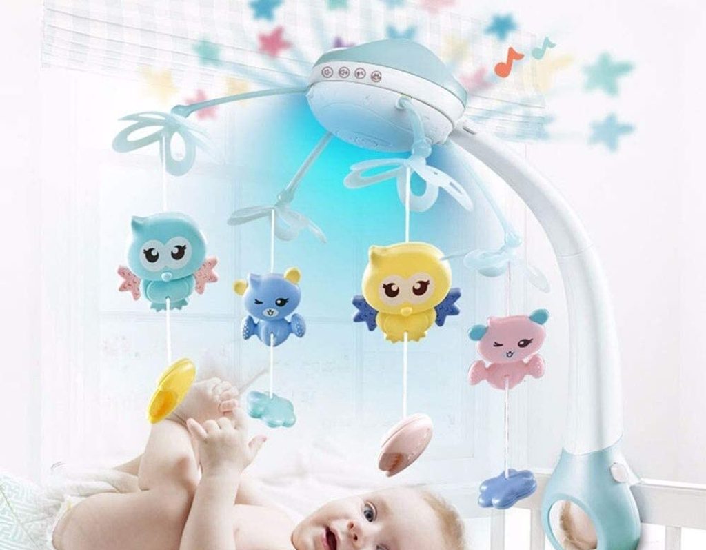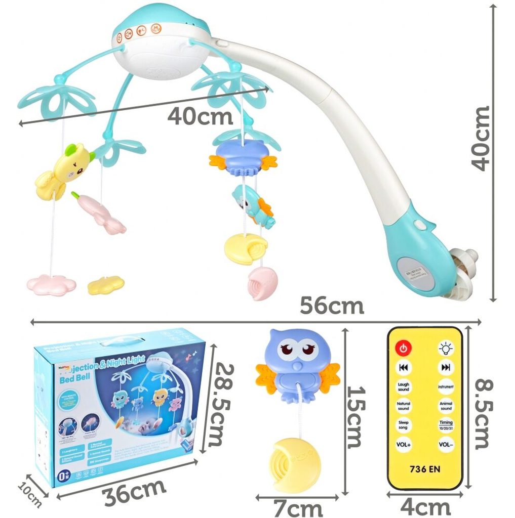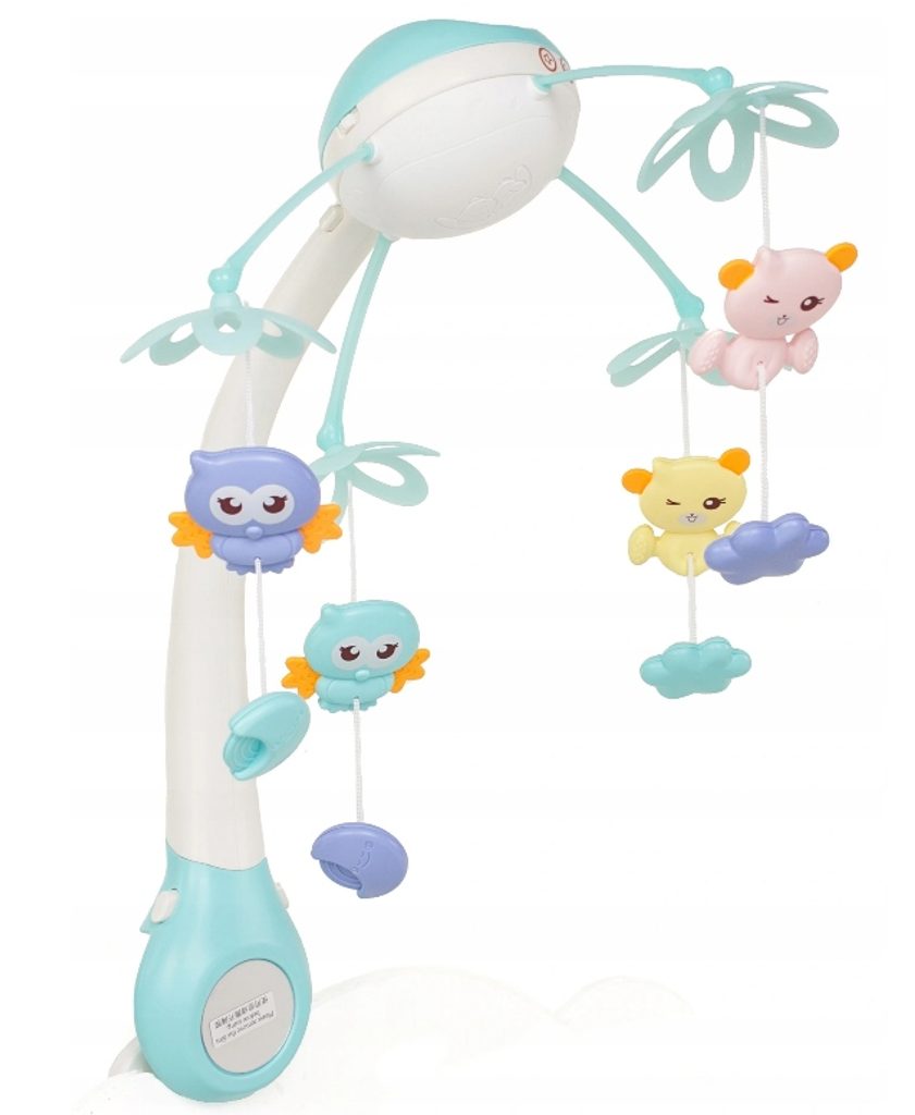 Nádherný dětský kolotoč Night Bell se 4 zavěšenými hračkami a projektorem, který zobrazuje barevné hvězdičky na stropě pomůže každému dítěti hravě usnout. Projektor lze ovládat pomocí dálkového ovladače a slouží také jako noční lampička s jemným světlem. Hračky lze odejmout a použít samostatně. Kolotoč je vybaven celkem 500 melodiemi včetně zvuků zvířátek, hudebních nástrojů a dětského smíchu. Lze ho snadno demontovat, můžete to ho tak umístit i nad kočárek. Je určen pro děti od narození.