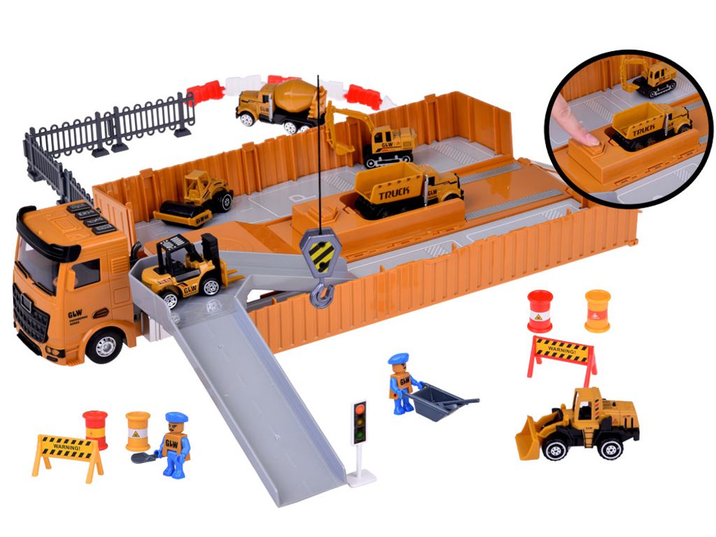 Víceprvková autosada tahač s otevíracím přívěsem - je nenahraditelná hračka pro každého malého fanouška aut. Obsahuje tajemství, která bude chtít znát každé dítě, a když se tak stane, zábava nikdy neskončí! Nákladní auto má velký kontejner, který - pozor! - lze otevřít. Vznikne tak obrovské parkoviště pro přesun strojů do areálu. Samozřejmostí je podpora 4 speciálních stabilizátorů, které se rozkládají na bocích, díky nimž vozidlo stojí bezpečně a nekýve se do stran. Kontejner má navíc pohyblivý spouštěč, do kterého stačí vybrané auto umístit, vytáhnout a je to! Uhánějící vůz bude uhánět vpřed. Jen nezapomeňte nejprve vytyčit příjezdovou cestu! Každé auto se raději pohybuje na kolech po povrchu - nemá křídla! V kontejneru můžeme zaparkovat až 6 stavebních vozů, které jsou součástí sady. Ale to není všechno! Každé vozidlo je pojízdné! - mají otáčející se kola a zvedací a otočné prvky. Dítě díky tomu pochopí, jak fungují mechanismy jednotlivých aut, které jsou dokonalou kopií těch skutečných.Součástí sady je také velký, otočný jeřáb s hákem, kterým lze jednotlivé prvky zvedat. Jde o velmi realistickou kopii té skutečné ze stavby.Donekonečna si hrát můžete i s pohyblivými figurkami, které mají uchopovací madla a snadno do nich umístíte stavební nářadí obsažené v sadě. Samozřejmostí bude plot a zabezpečení staveniště! Tohle je základ! Ale i na to jsme mysleli! Dítě musí znát pravidla bezpečnosti silničního provozu a stavebnictví a jak rozpoznat možná pracovní rizika. Proto sada obsahuje cedule a informační tabule, brány, oplocení a kužely. Každé dítě si tak připomene, jak důležité je dodržovat pravidla silničního provozu. Auto je také interaktivní – má 4 tlačítka, která po stisknutí vydávají různé zvuky, jako je klakson, zvuk couvání a veselé melodie. Když se vozidlo ozve, objeví se světelné efekty – červená, blikající světla. Sestava třech autobusů Super Bus je ideální hračkou pro rozvoj manuální zručnosti a logického myšlení. Každý z nich má přední pohon na setrvačník. Sestava obsahuje 2 cestovní autobusy a jeden školní. Všechny jsou provedeny v jasných zářivých barvách. Hračka je určena pro děti od 36 měsíců věku.