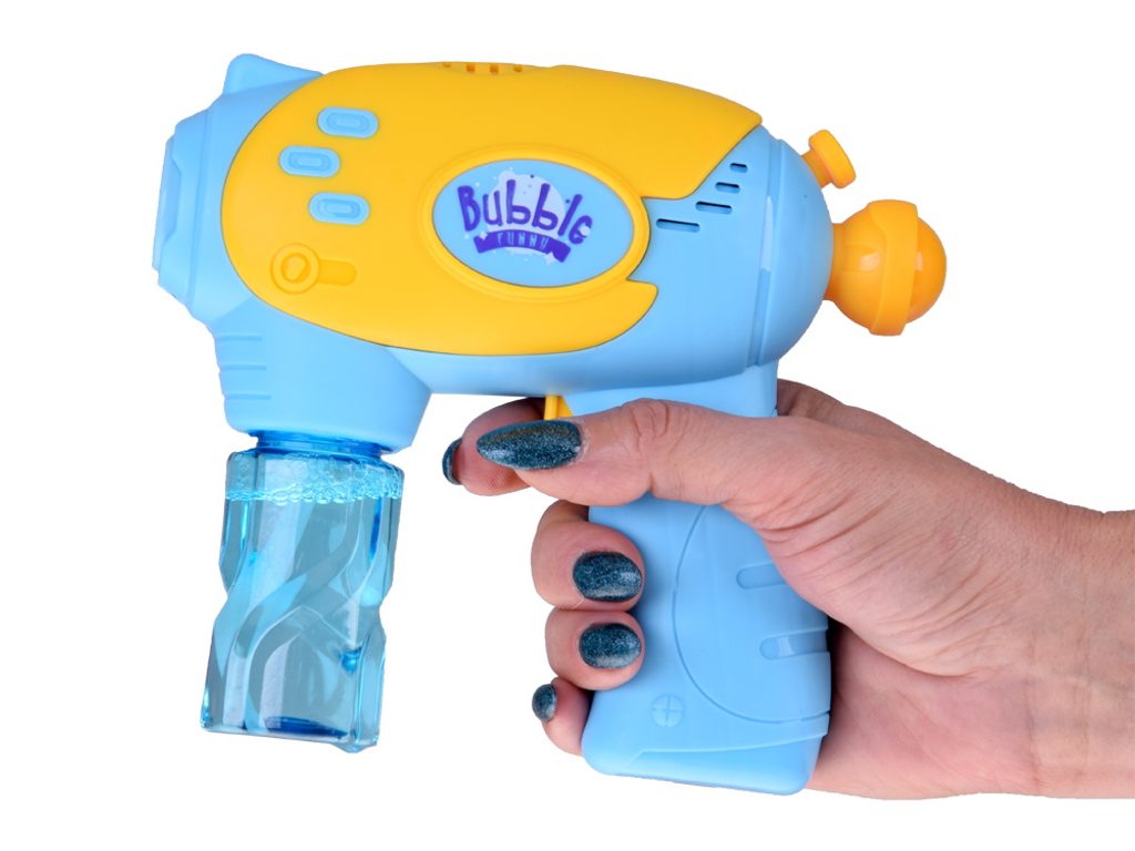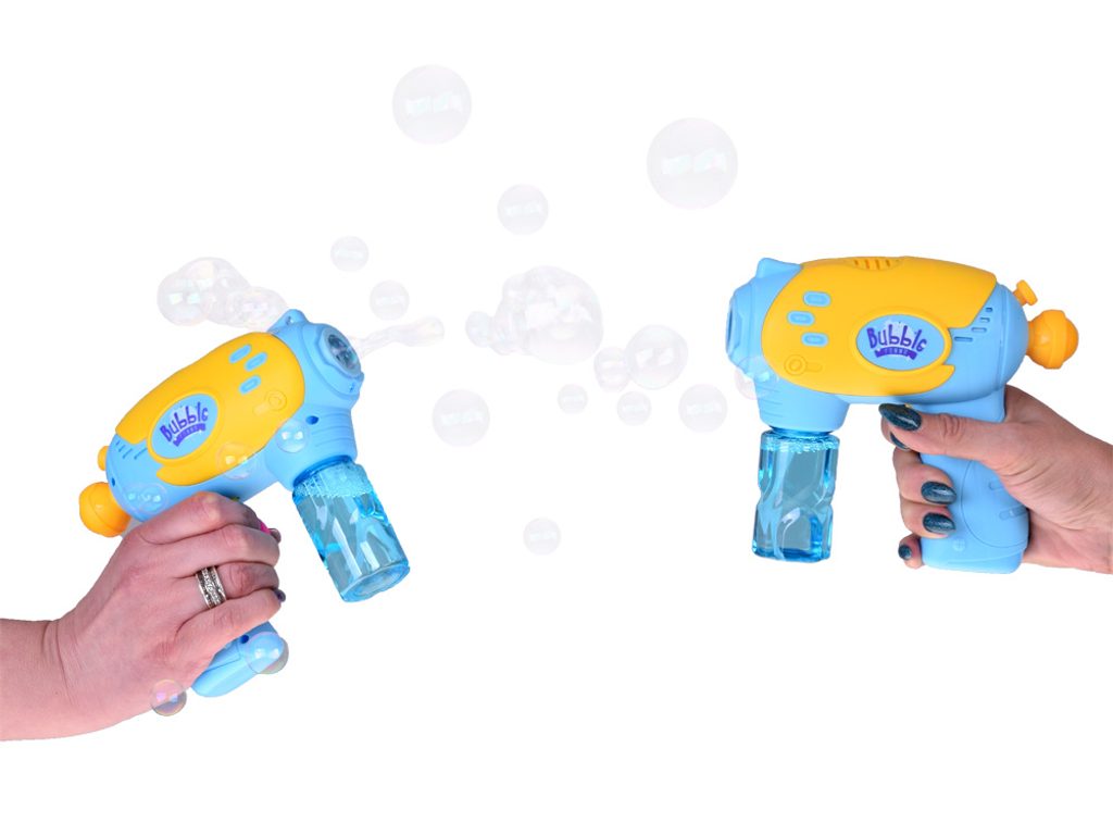 Dětské bublifuky ve tvaru pistole Bubble Guns dokážou vytvořit nekonečné množství bublin za velmi krátkou dobu. Nejdříve je třeba nasadit lahvičku s mýdlovým roztokem přímo do spodní části bublifuku. Poté už jen stačí zmáčknout spoušť a začnou se generovat bubliny. Po ukončení hry je třeba lahvičku z bublifuku demontovat a otřít ho suchým hadříkem. Hračka je vyrobena z plastu a je určena pro děti od 36 měsíců věku.
