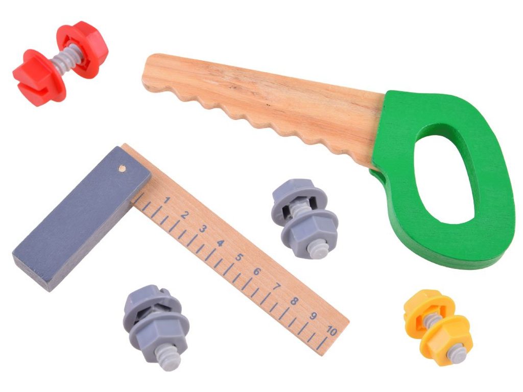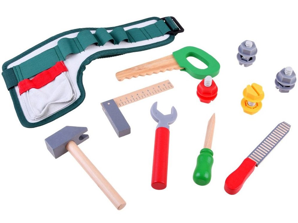 Sada dřevěného nářadí pro nejmenší kutily Malý opravář. Sada obsahuje několik druhů nářadí jako je pilka, kladívko, klíč, šroubovák, pilník a pravítko. Vše doplňují 4 kusy šroubů s maticemi. Vše se dá umístit do praktického pásu s nastavitelným obvodem pasu. Dítě tak může vše nosit sebou. Hračka je určena pro děti od 36 měsíců věku.