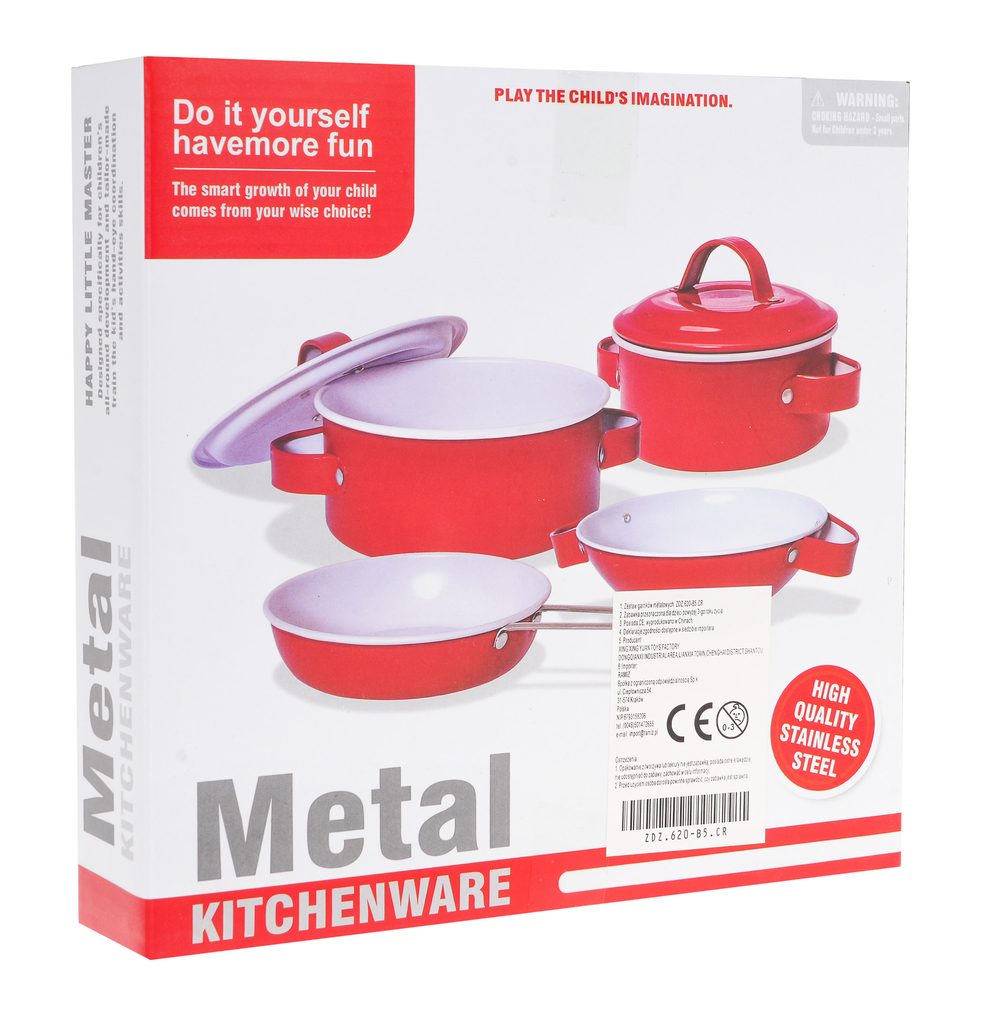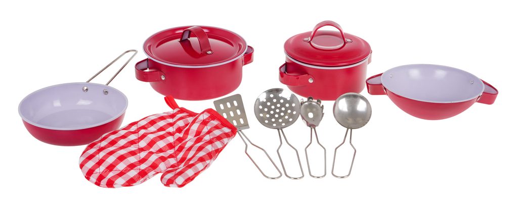 Sada kovového nádobí Red Kitchenware do dětské kuchyňky imituje skutečné nádobí. Skládá se celkem z 11 součástí a nesmí chybět v žádné dětské kuchyňce nebo si s ní lze hrát samostatně. Najdete zde 2 hrnce s odpovídajícími poklicemi, pánev, misku, 2 obracečky, 2 naběračky a také kuchyňskou rukavici. Tato hračka je určena pro děti od 3 let věku.