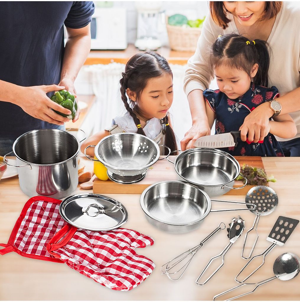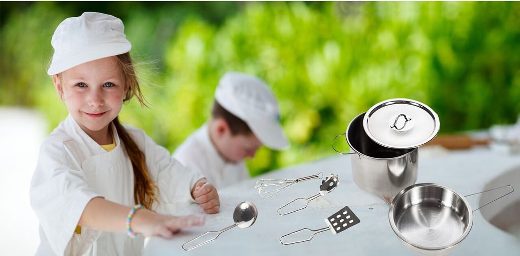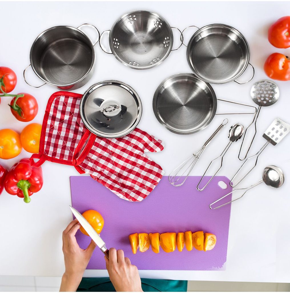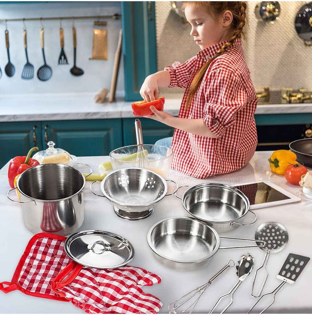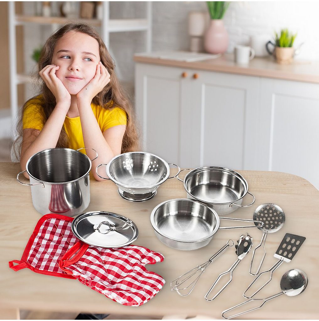 Sada kovového nádobí Kitchen Backpack do dětské kuchyňky imituje skutečné nádobí. Skládá se celkem z 12 součástí a nesmí chybět v žádné dětské kuchyňce nebo si s ní lze hrát samostatně. Najdete zde hrnce, pokličku, pánev, cedník, kuchyňské nářadí a dokonce 2 chňapky. Vše je uloženo v praktickém průhledném batohu. Tato hračka je určena pro děti od 3 let věku.