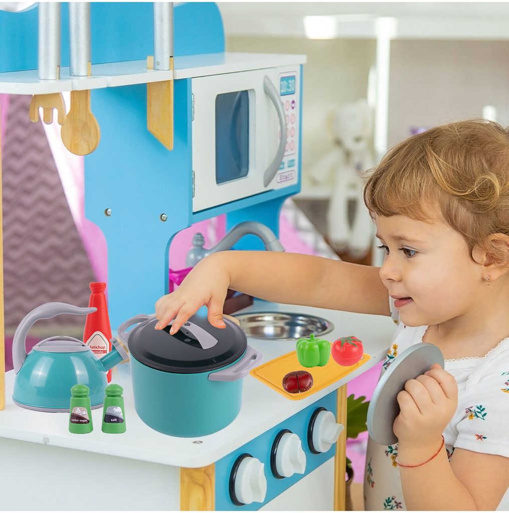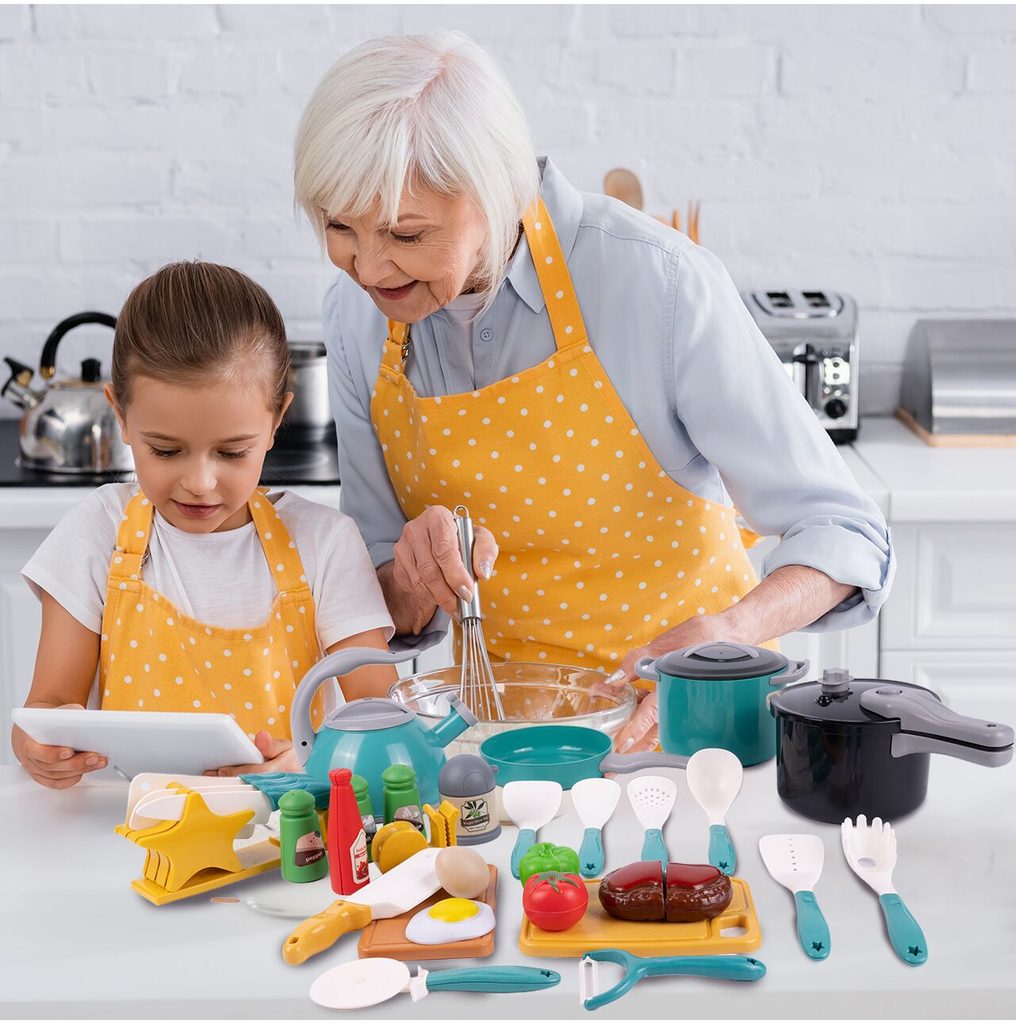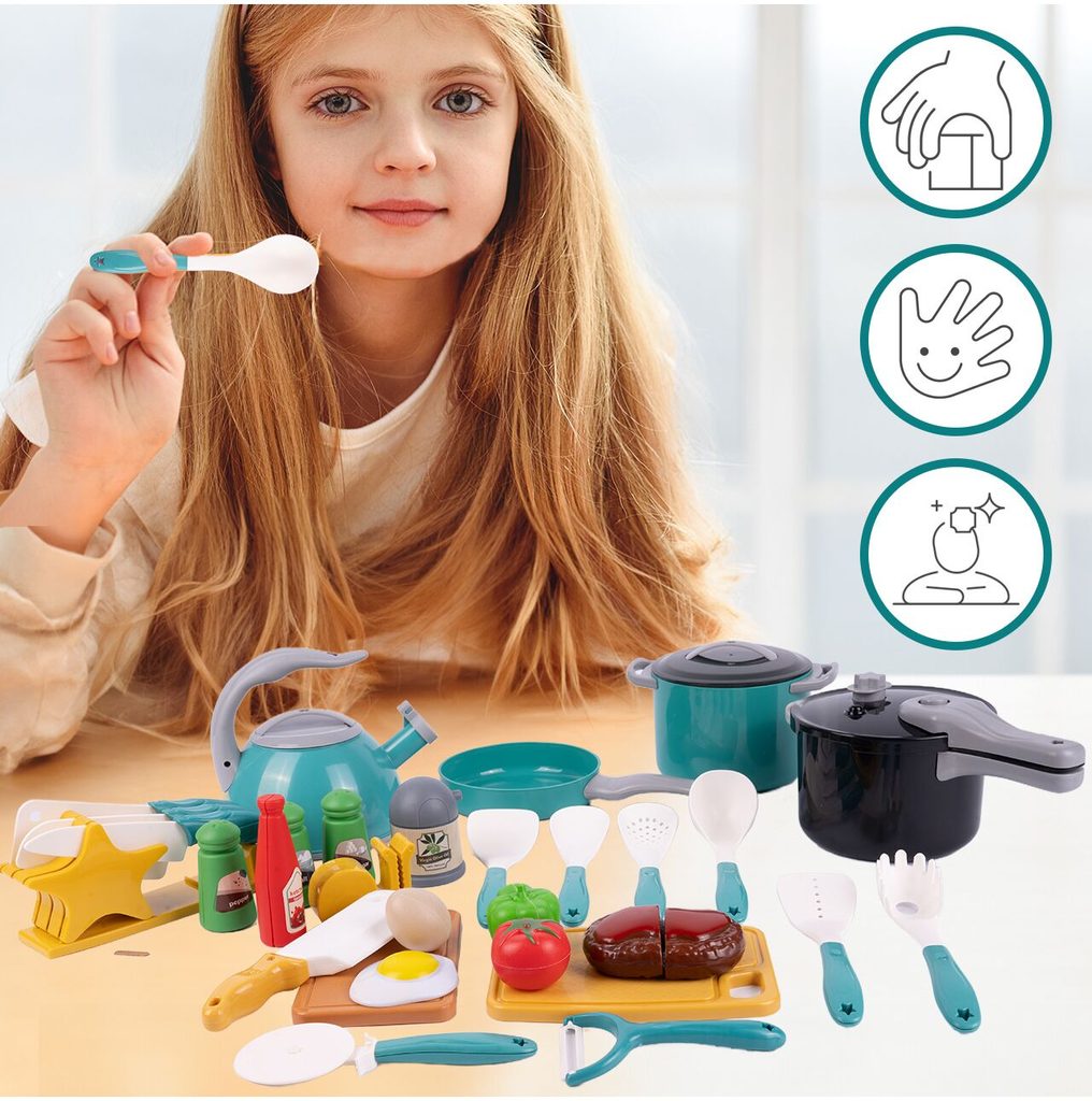 Sada nádobí Happy Chef do dětské kuchyňky imituje skutečné nádobí. Skládá se celkem z 33 součástí a nesmí chybět v žádné dětské kuchyňce nebo si s ní lze hrát samostatně. Najdete zde hrnec, konvici, tlakový hrnec s poklicí a kuchyňské náčiní jako jsou obracečky naběračky, vařečka a další. Tato hračka je určena pro děti od 3 let věku.